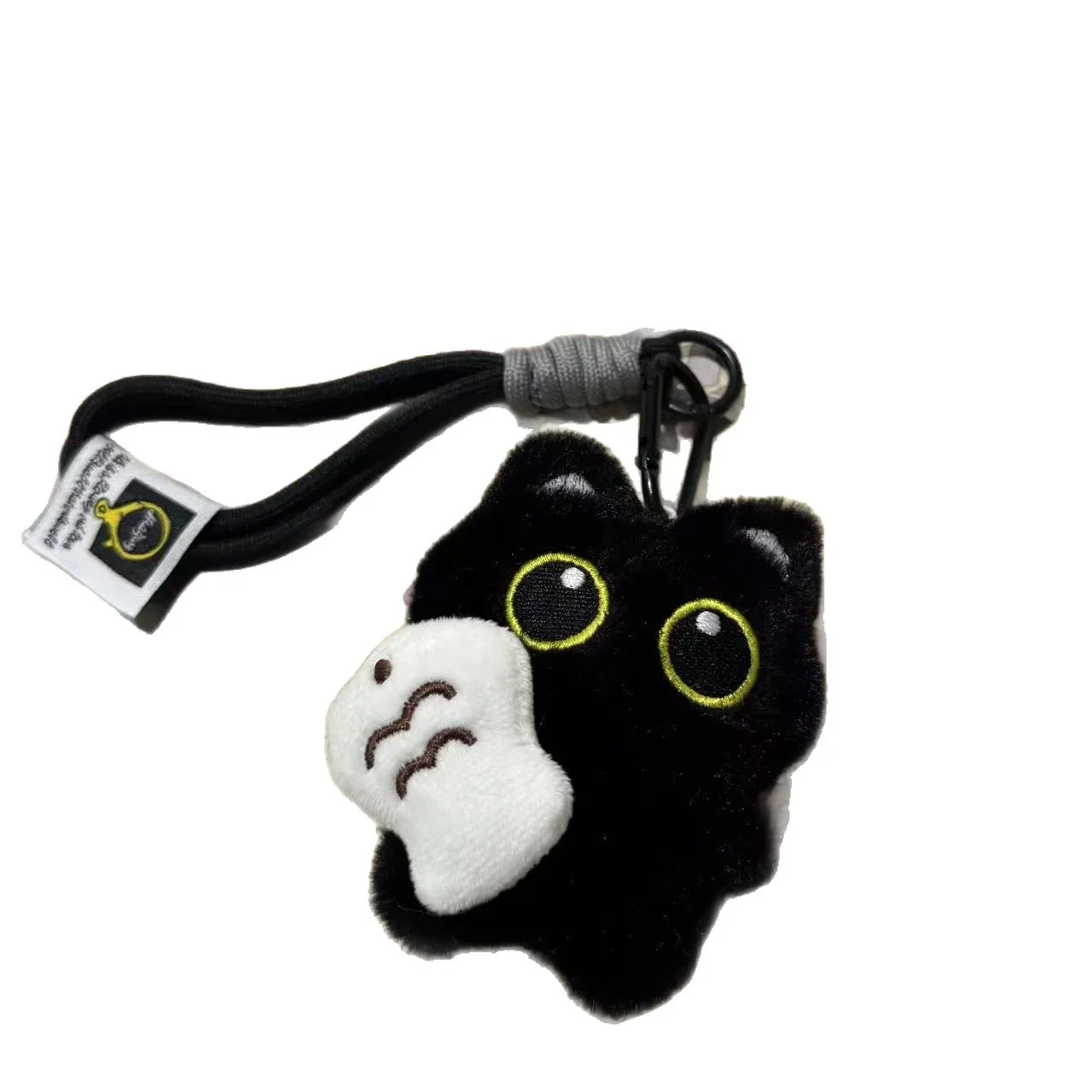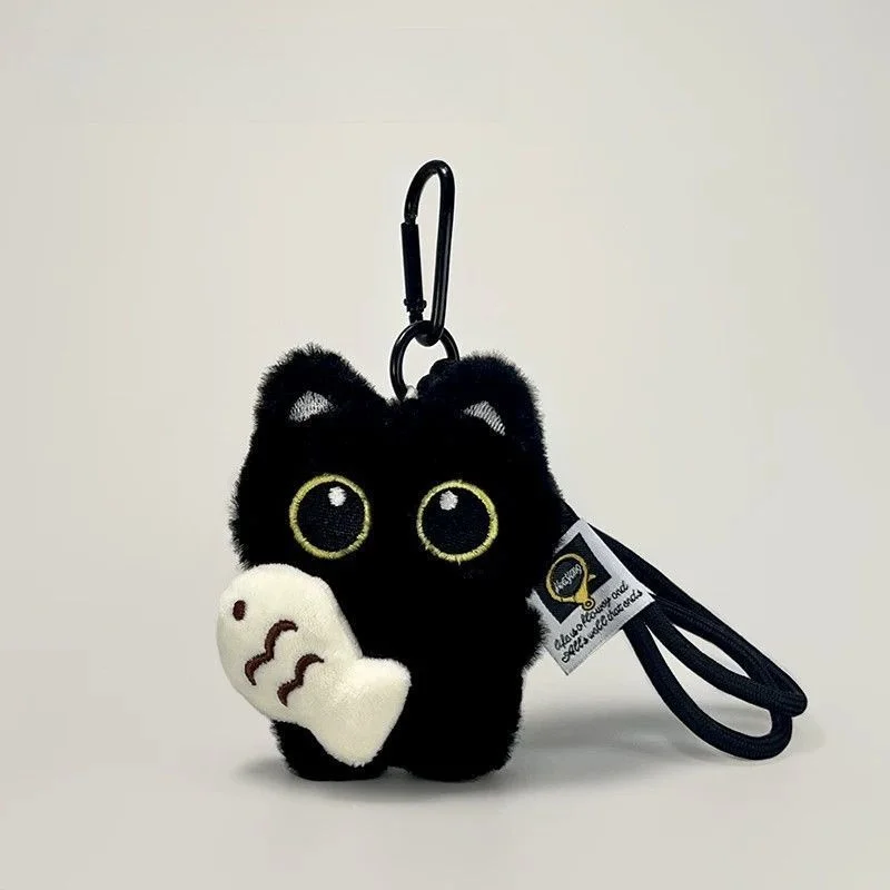 1 pçs legal de pelúcia gato preto boneca brinquedo chaveiro saco pingente animais engraçados encantos carro chaveiro acessórios para mulheres casais presentes - TopDealBox