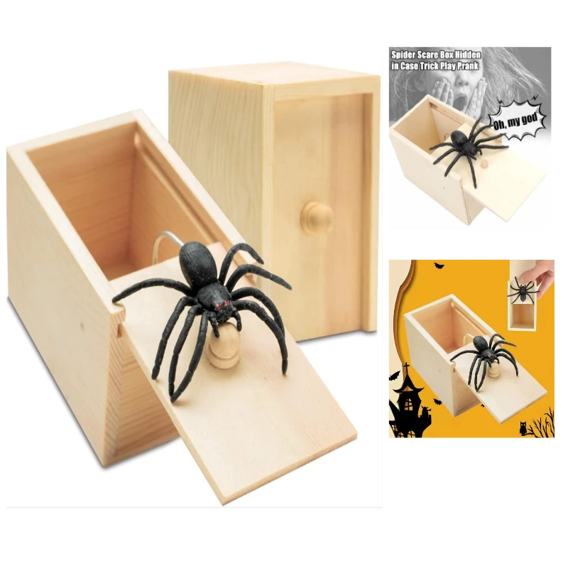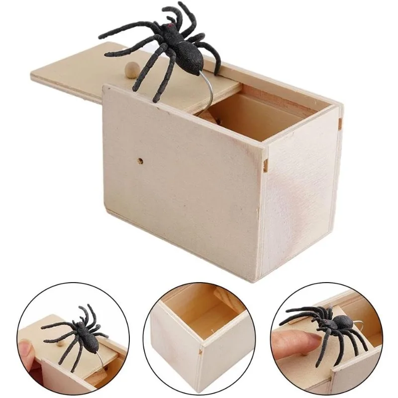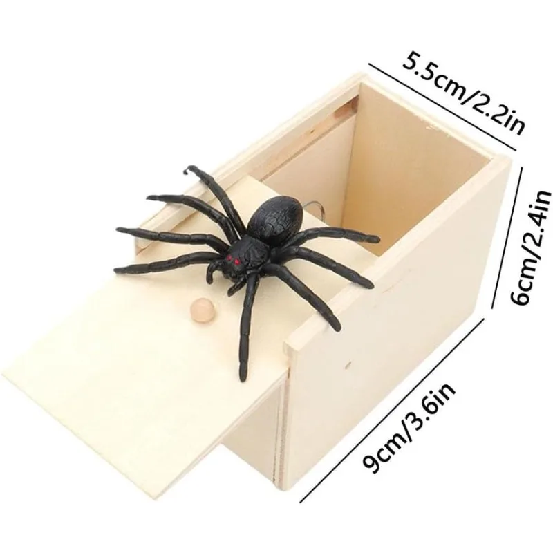Caixa de Pegadinha de Aranha de Madeira, Brinquedo de Pegadinha Engraçado, Caixa de Pegadinha de Aranha Assustadora com Aranha de Borracha Realista, Acessório para Festa de Halloween e Dia da Mentira - TopDealBox