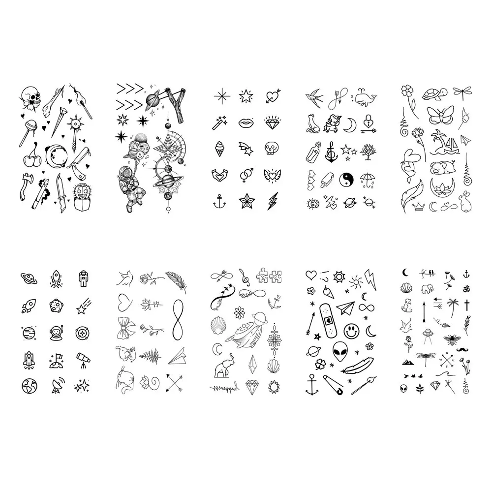 10 pçs à prova dwaterproof água tatuagem temporária adesivo amor emoticon lua sol linhas crânio planeta tatto pulso tatuagens falsas arte do corpo mulheres homens - TopDealBox