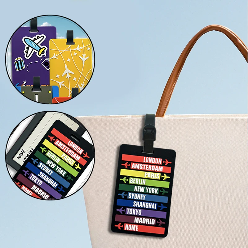 1/6 pçs misturado criativo pvc borracha macia etiqueta de bagagem embarque passagem identificação pendurar tag puxar haste bagagem viagem tag multi functi - TopDealBox