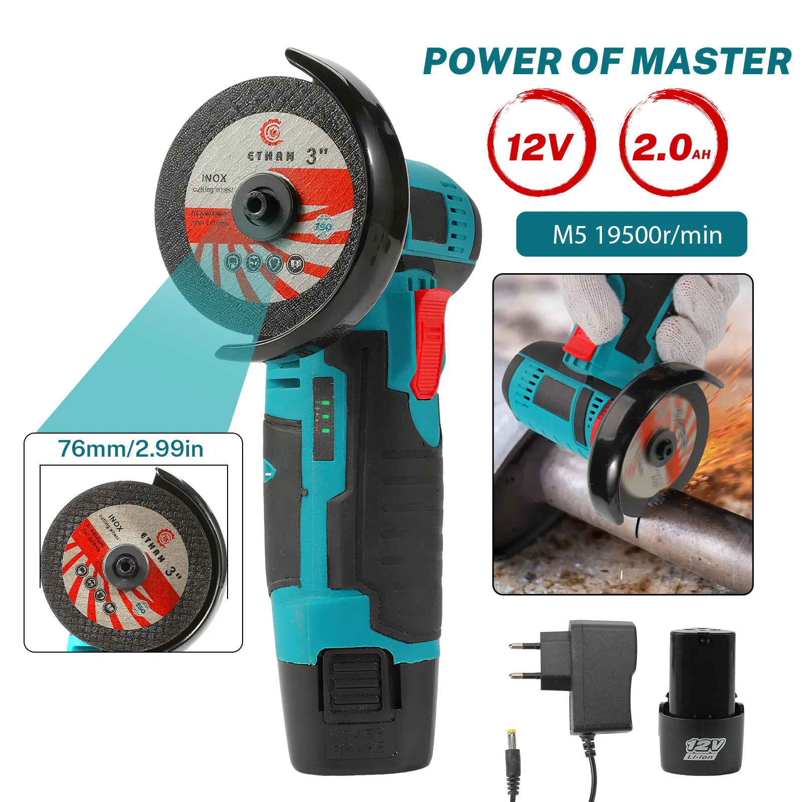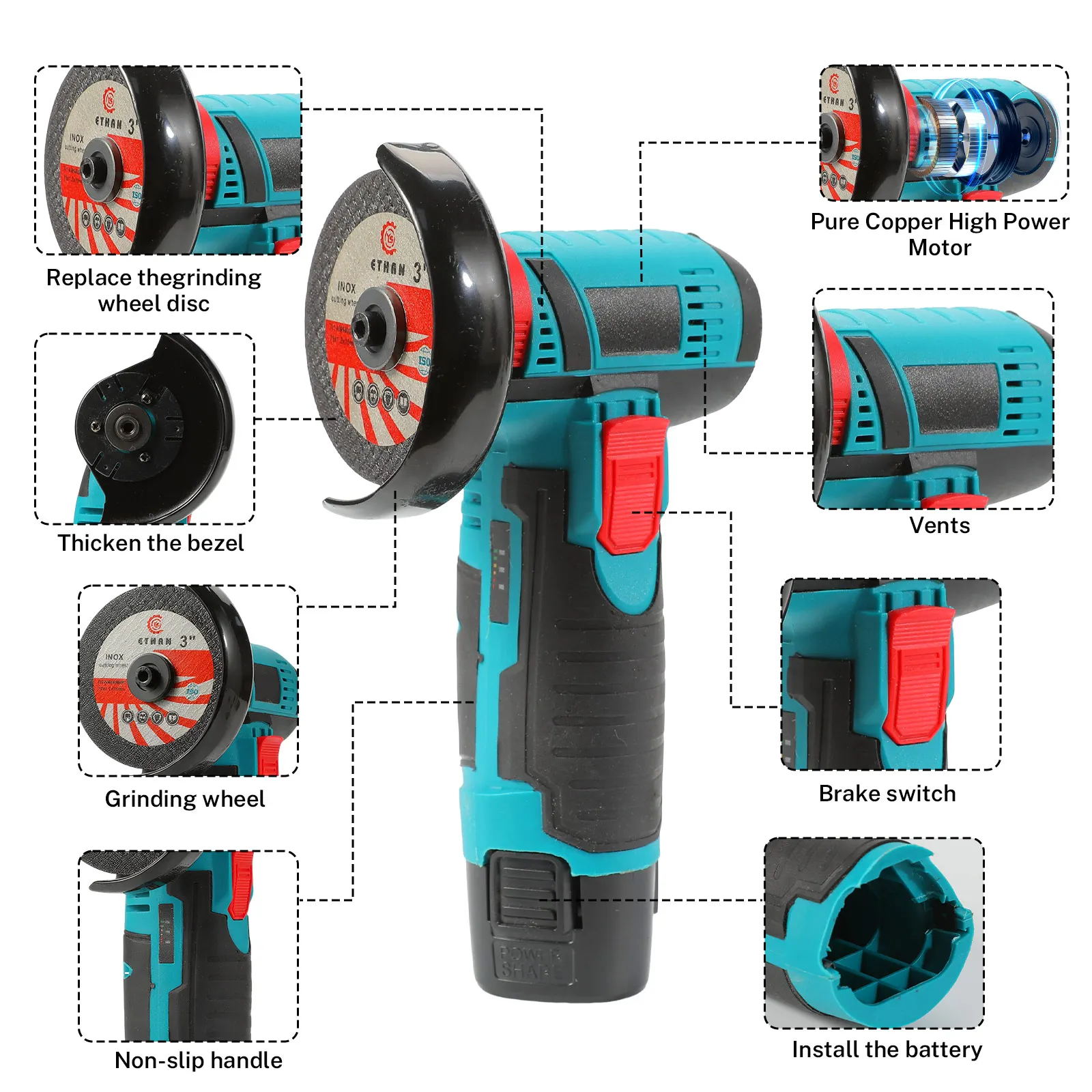 19500rpm 12v mini moedor de ângulo moagem sem fio máquina portátil recarregável bateria lítio moedor amortecimento ferramentas elétricas - TopDealBox