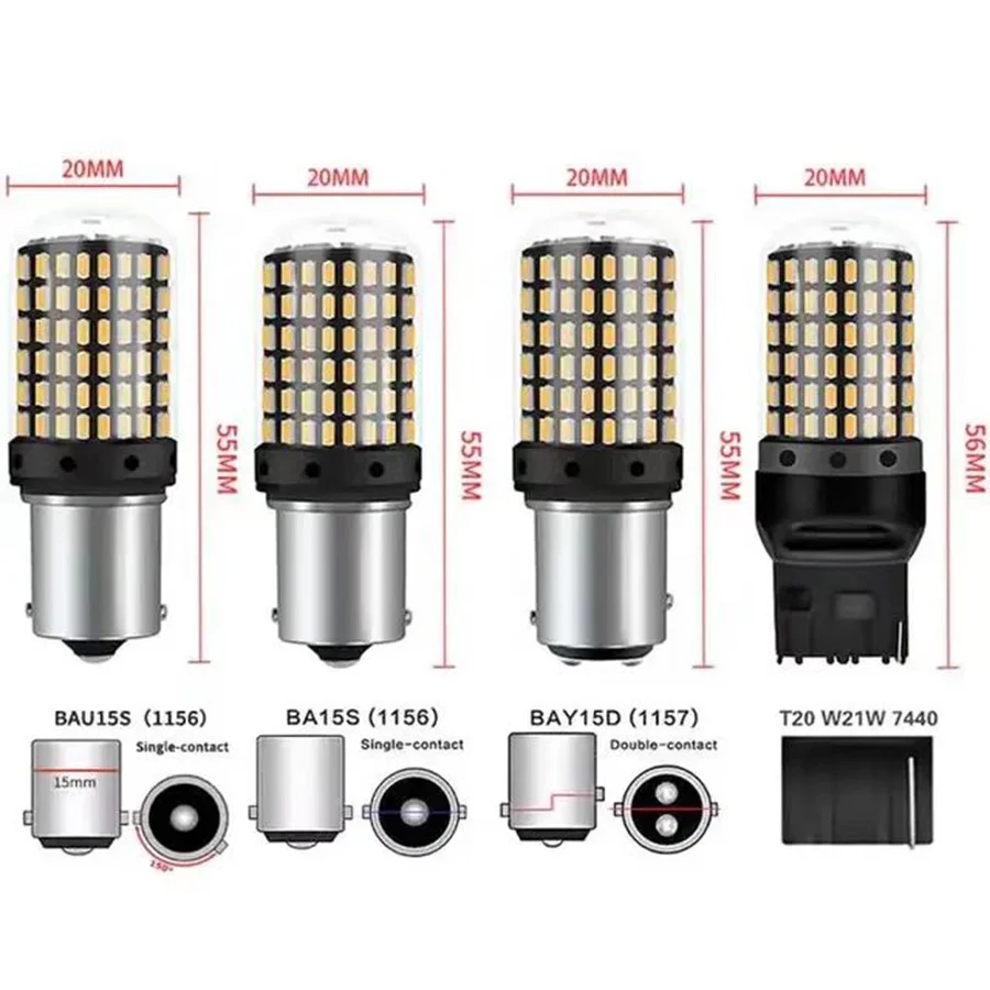 2 pçs 1156 ba15s p21w bau15s py21w t20 7440 w21w 3157 1157 p21/5w w21/5w lâmpadas led 144smd led canbus lâmpada para luz de sinal volta - TopDealBox