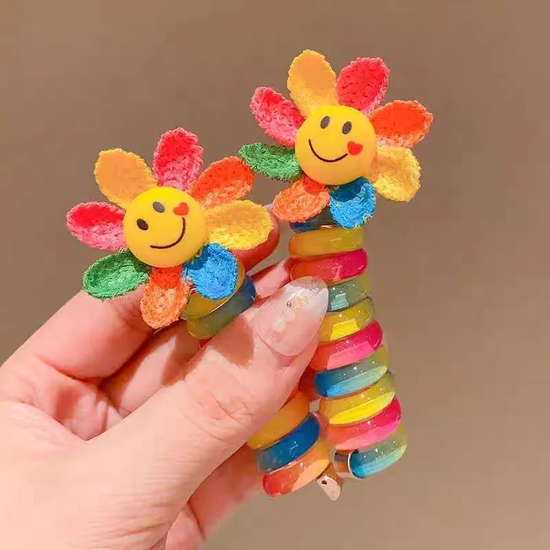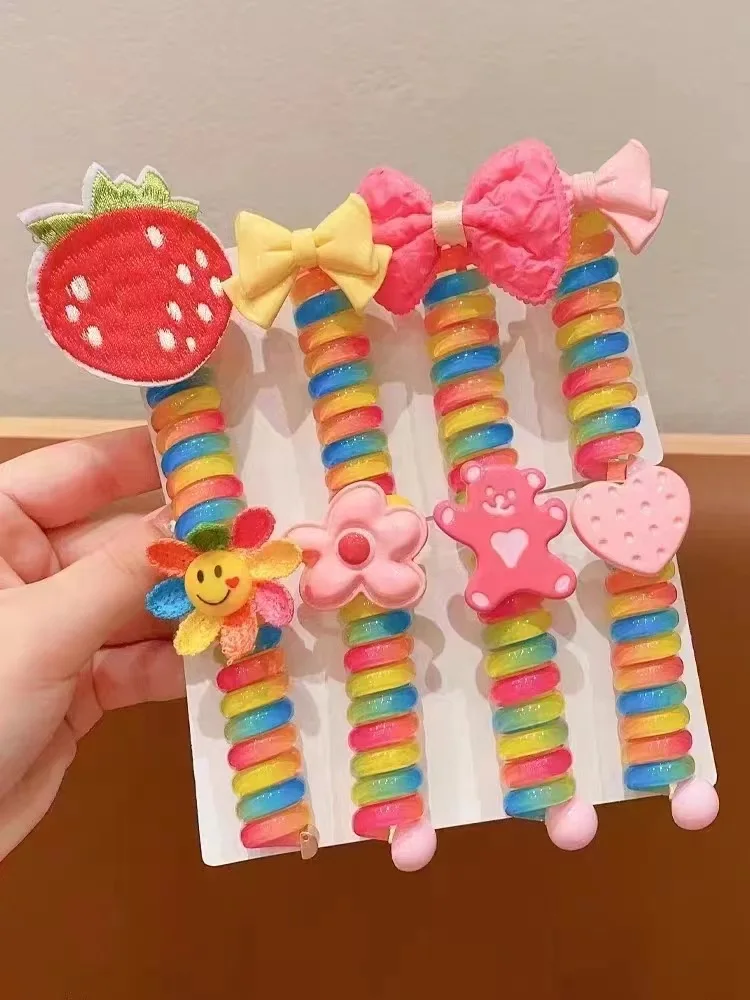 2 pçs meninas elásticos de borracha crianças fio telefone laços de cabelo bobina espiral hairbands corda de cabelo rabo de cavalo acessórios para o cabelo - TopDealBox