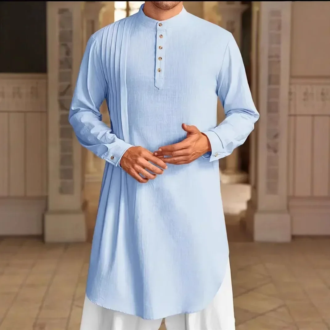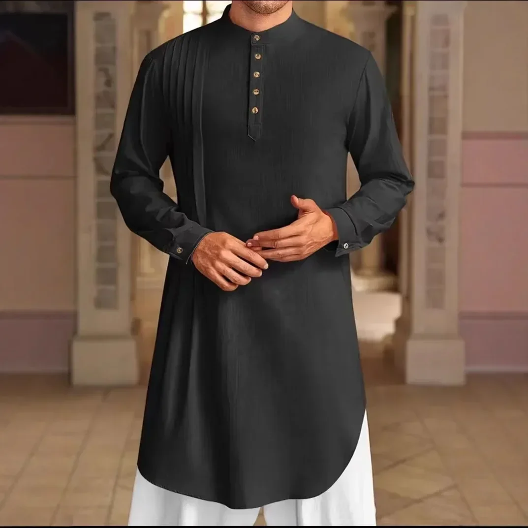 2025 novo muçulmano médio oriente árabe malásia botão masculino linha de algodão camisa muçulmano robe - TopDealBox