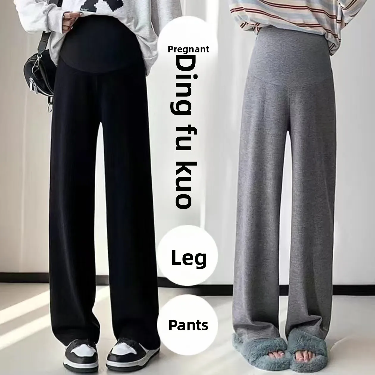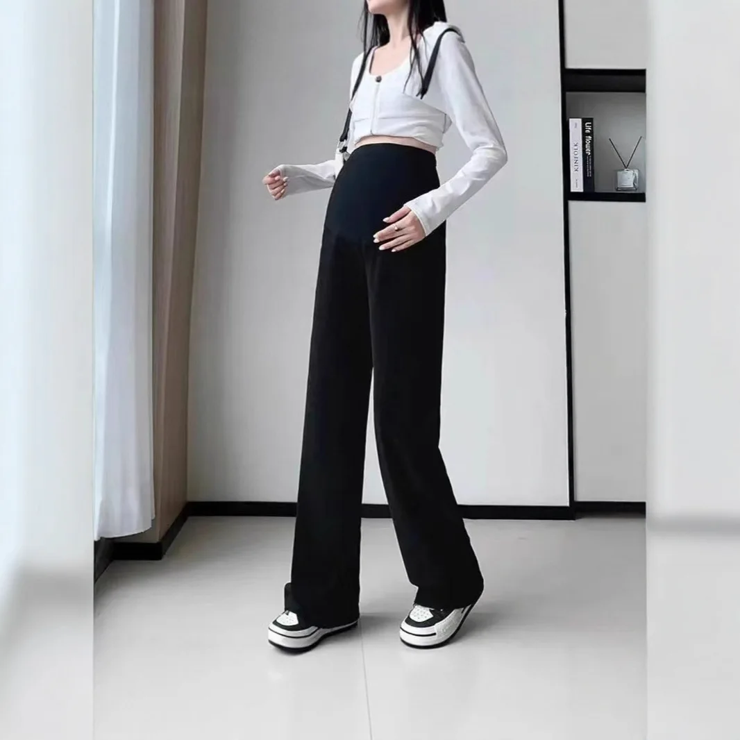 2025 outono inverno calças para grávidas perna larga solta em linha reta cintura elástica barriga calças compridas para grávidas juventude gravidez - TopDealBox