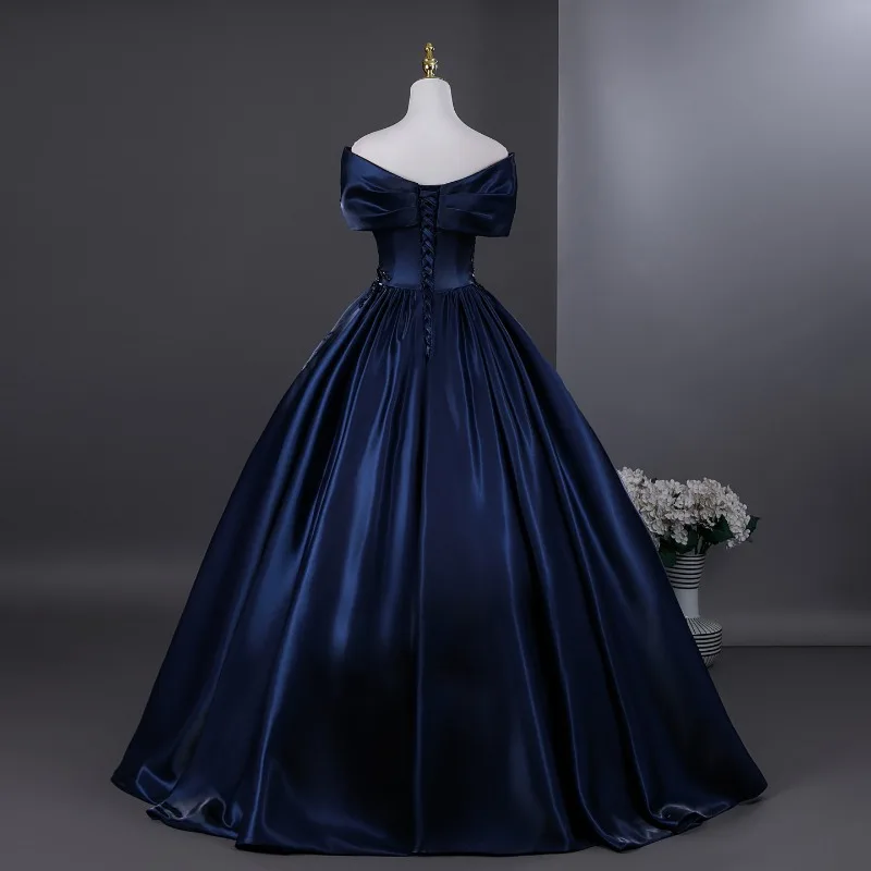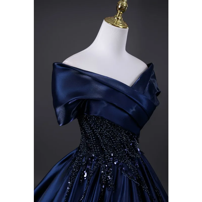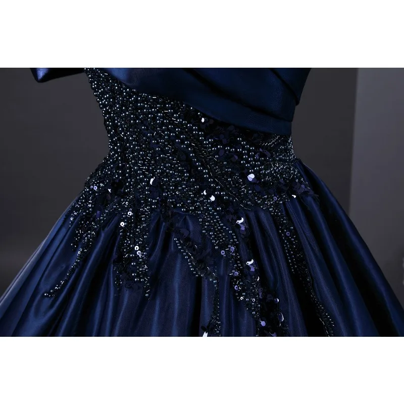 Início > Roupas femininas > Vestidos personalizados 2026 novo vestido de noite de cetim feminino um ombro elegante emagrecimento retro frisado decoração desempenho vestido de exame de arte vocal Informações de envio