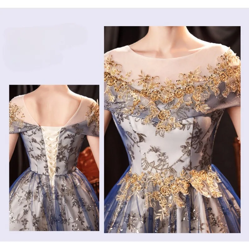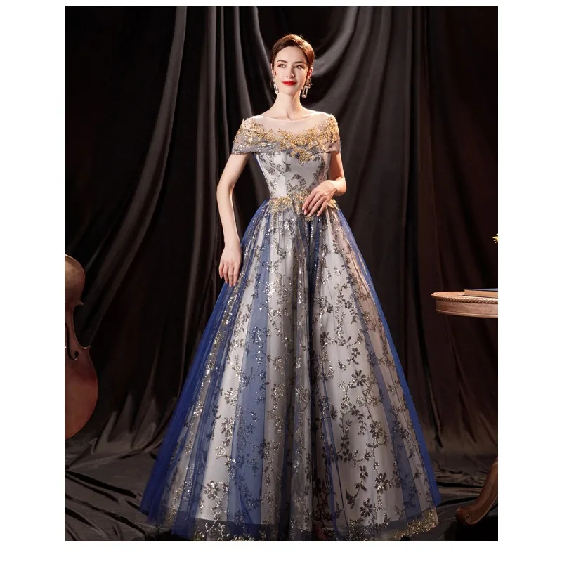 2026 primavera feminino azul bordado vestido de casamento, vestido de noite, banquete de moda, reunião anual de glitter, vestido de desfile de moda - TopDealBox