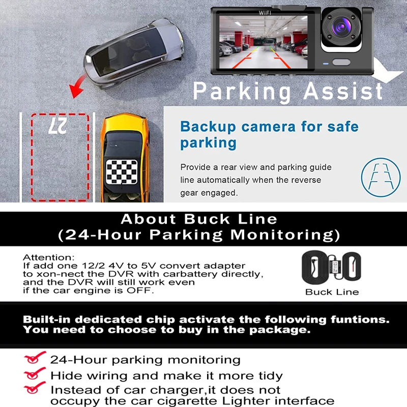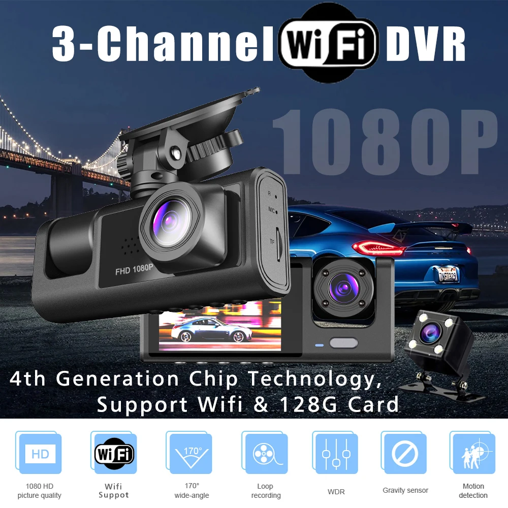 3 câmera wifi traço cam cabine carro dvr 1080p interior veículo três vias canal dvrs gravador de vídeo dashcam filmadora - TopDealBox