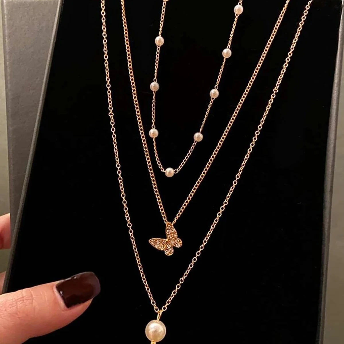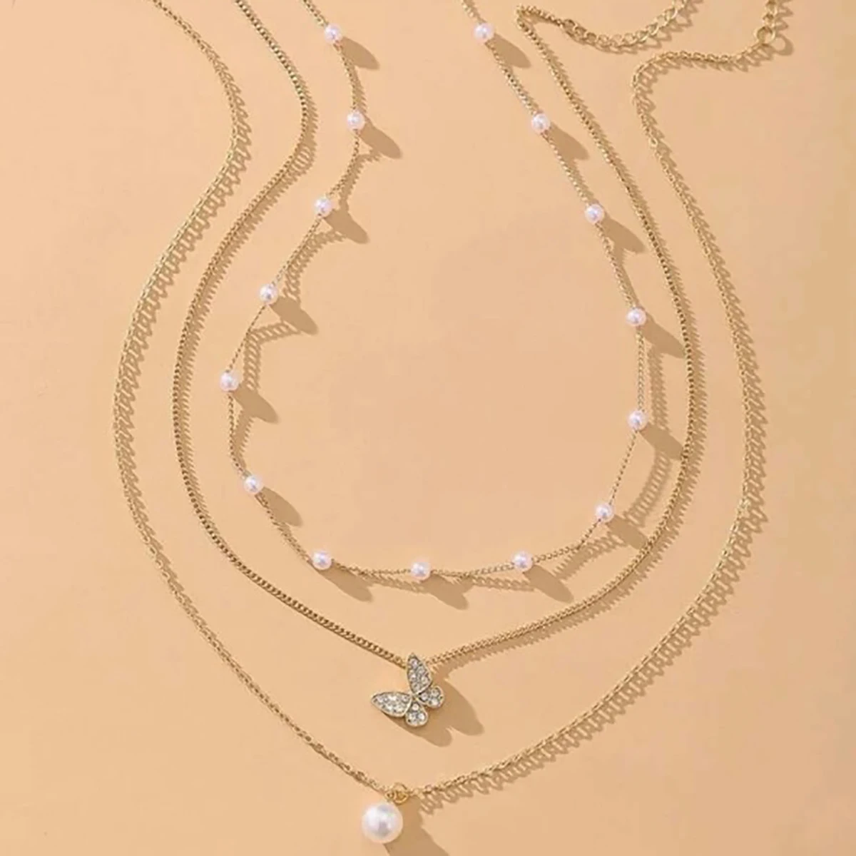 3 pçs terno retro multicamadas colar decorado com pérola artificial clavícula corrente criativo simples borboleta pingente colar | Melhor Preço at TopDealBox