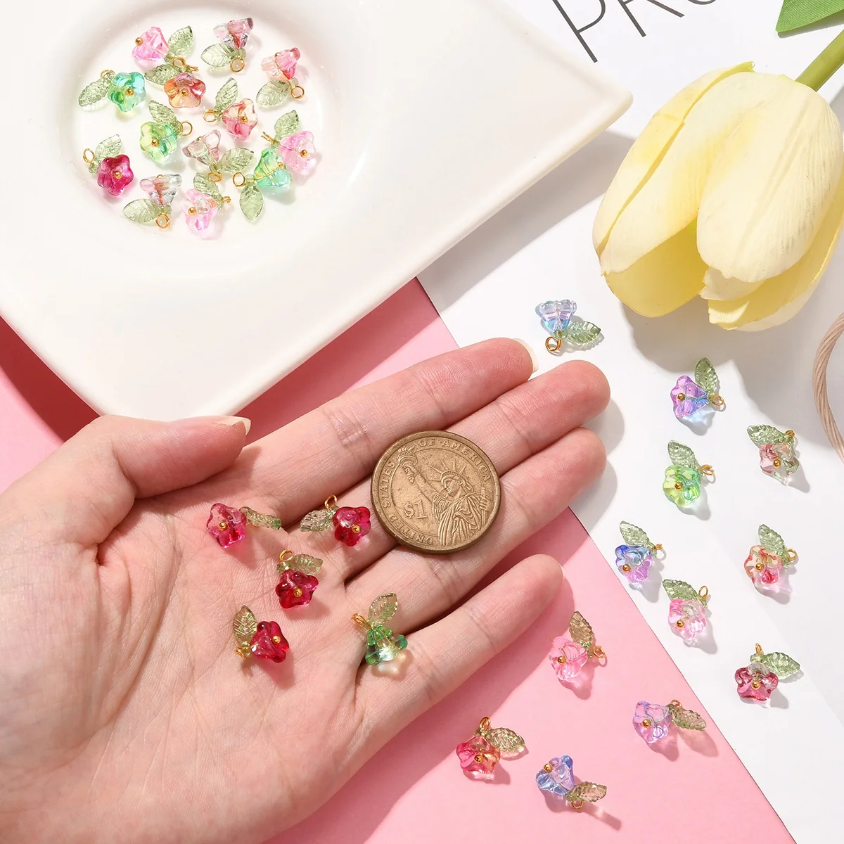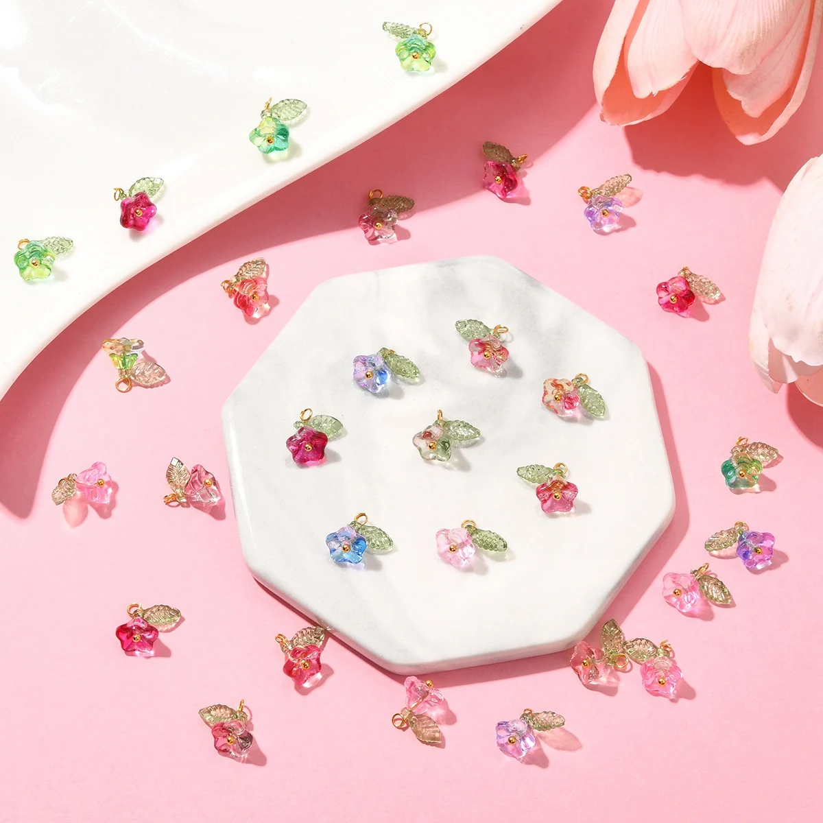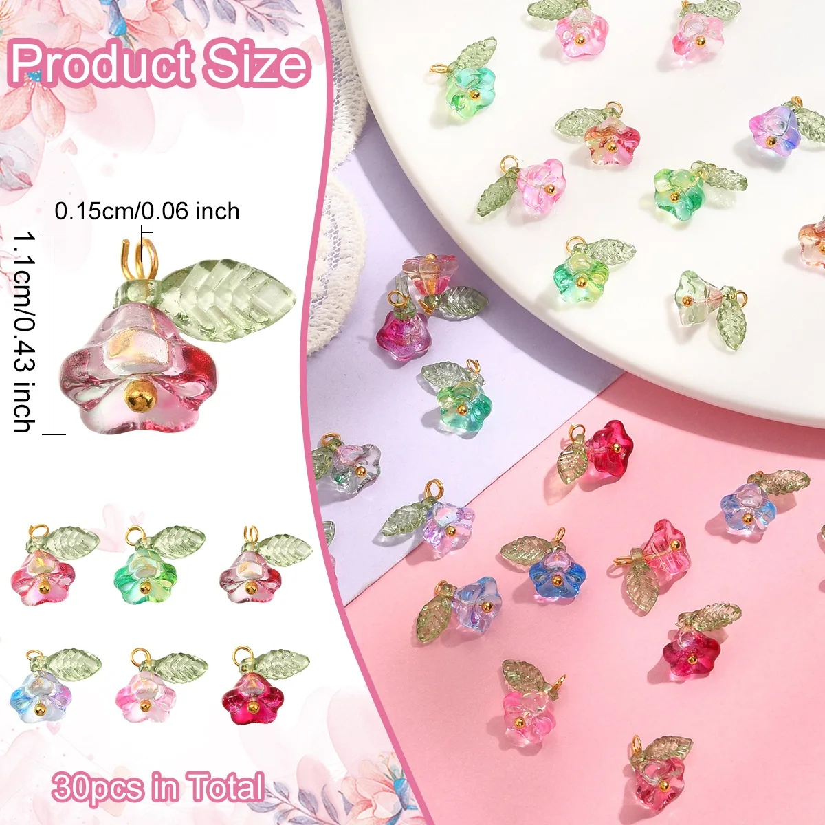 30 peças 6 cores pingentes contas flor com descobertas douradas amuletos para mulheres colar pulseira brincos faça você mesmo jóias - TopDealBox