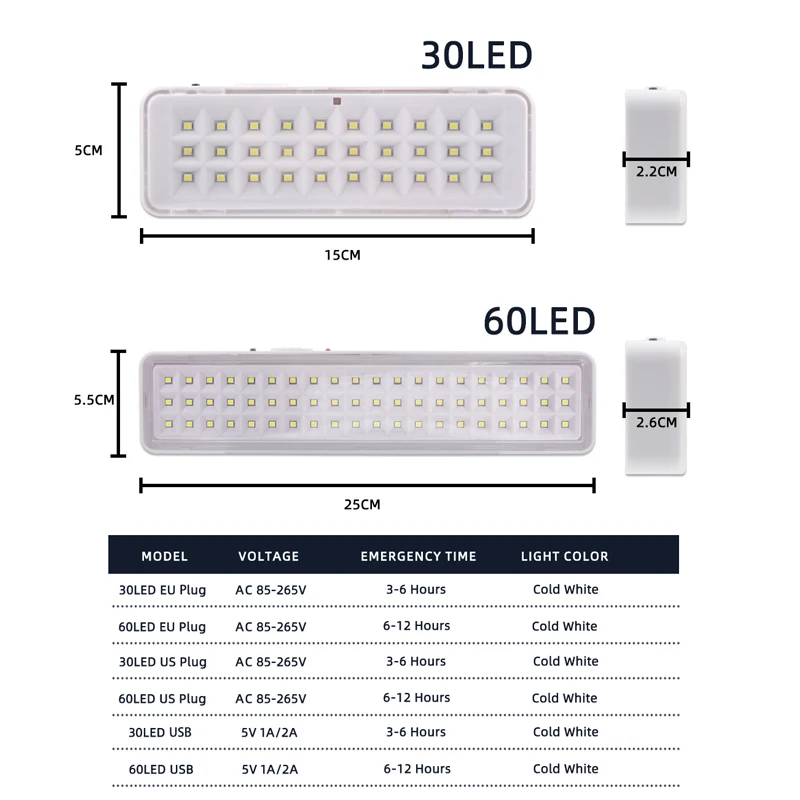 30/60 led lâmpada de emergência portátil luz de evacuação de emergência montada na parede casa inteligente lâmpada led 3 modos reguláveis luzes de acampamento - TopDealBox