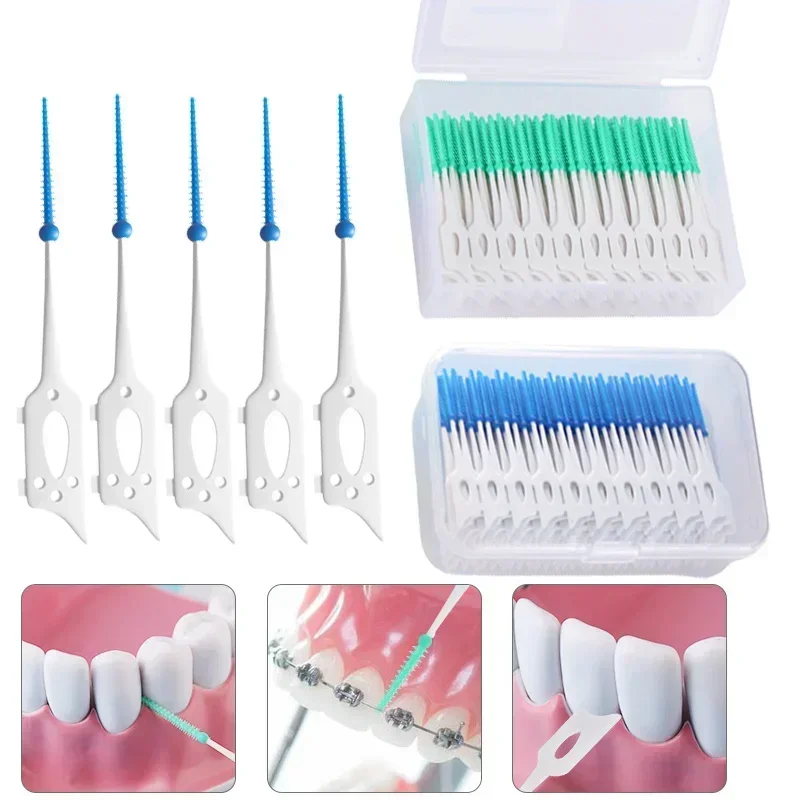 40/120 pçs escova interdental de grau alimentício silicone limpo fendas dente caixa cuidados dentários palitos odontologia dental | Melhor Preço at TopDealBox
