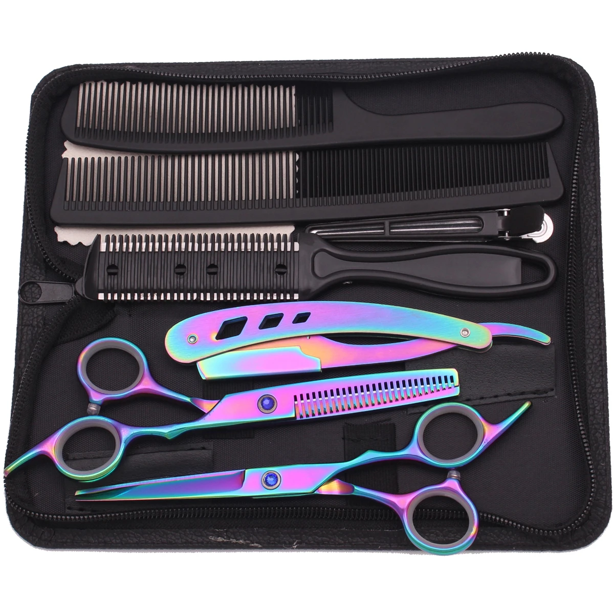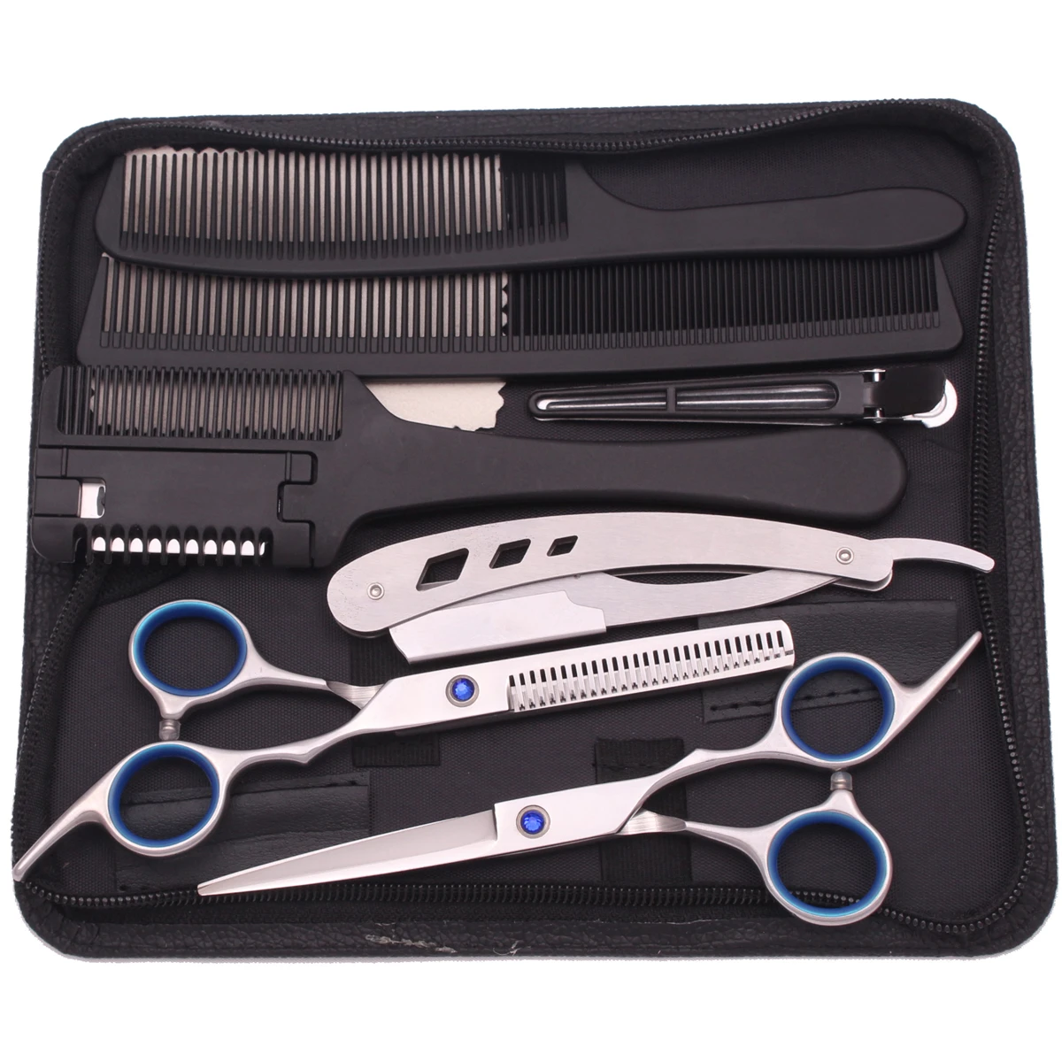 Tesoura de cabelo profissional de 6 '', tesoura de corte, desbaste, cabeleireiro, conjunto de pente, salão de beleza, barbeiro e casa, aço japonês, dropshipping - TopDealBox