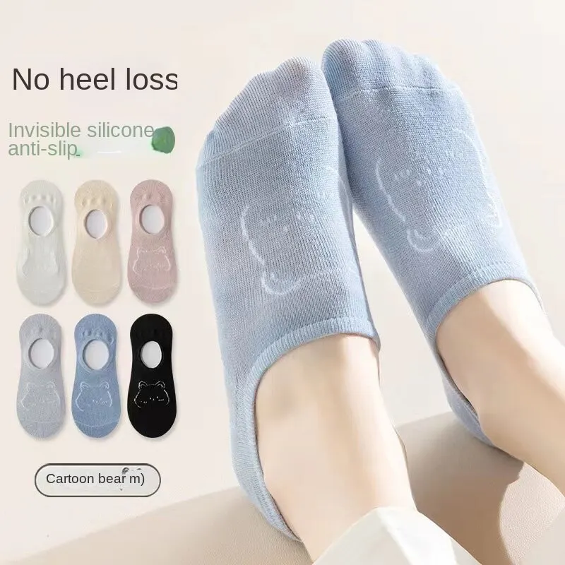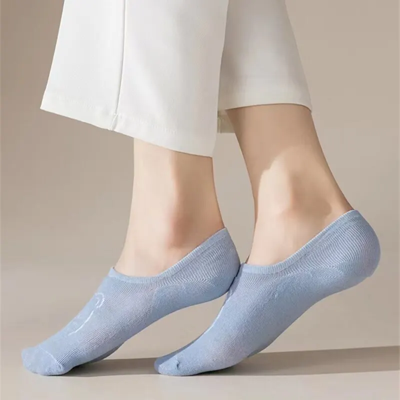 6 Pares de Silicone Antiderrapante Meias Invisíveis das Mulheres Verão Cor Sólida Tornozelo Barco Meias Femininas Macias de Algodão Macio Chinelos EUR35-39 - TopDealBox