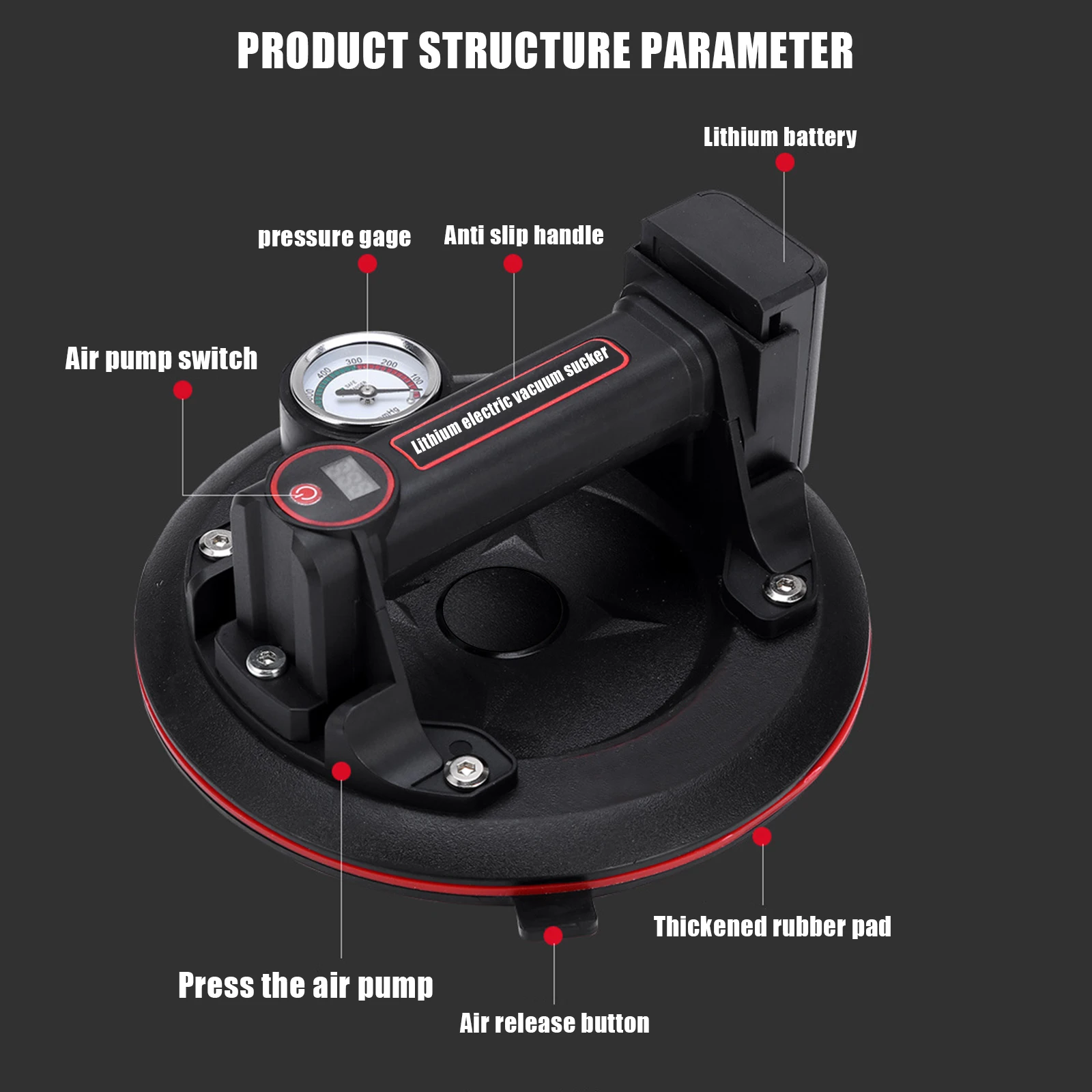 8 Polegada 200kg ventosas de vácuo da bomba de ar com ferramentas de manuseio do medidor de pressão para a substituição da janela de levantamento do granito da telha - TopDealBox