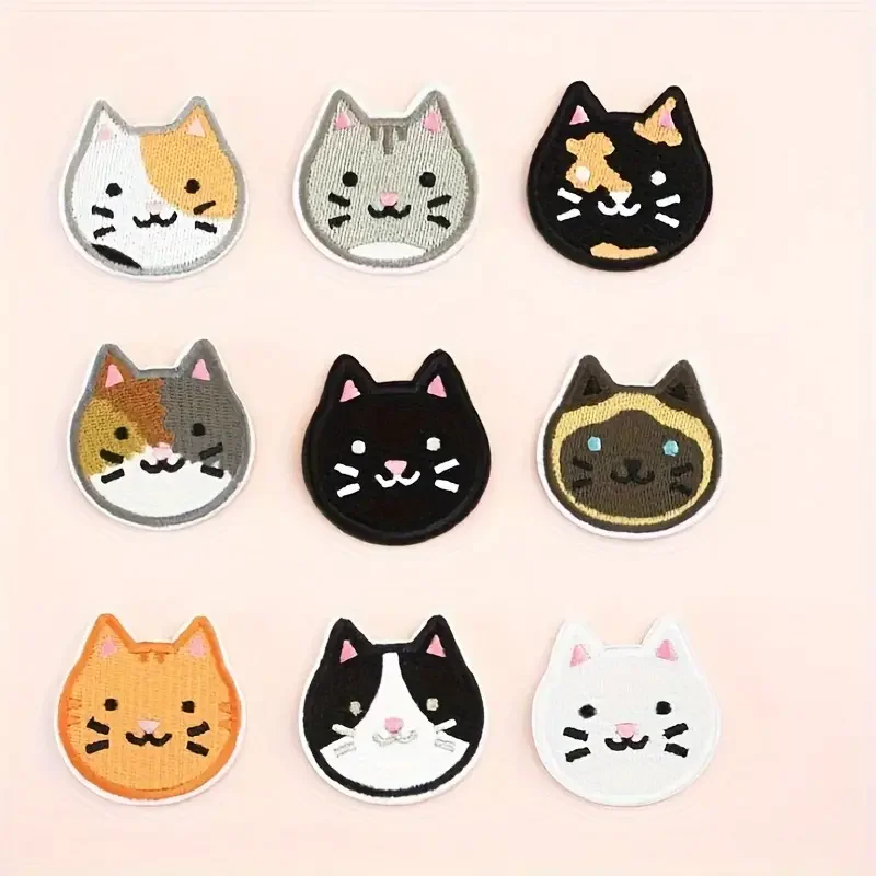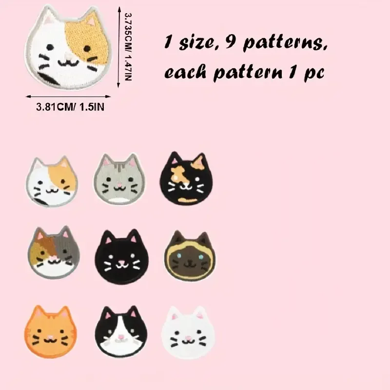 9 pçs sorriso gato bonito bordado remendo ferro em costurar em remendos para roupas boné saco jaqueta diy presente animal emblema com adesivo quente - TopDealBox