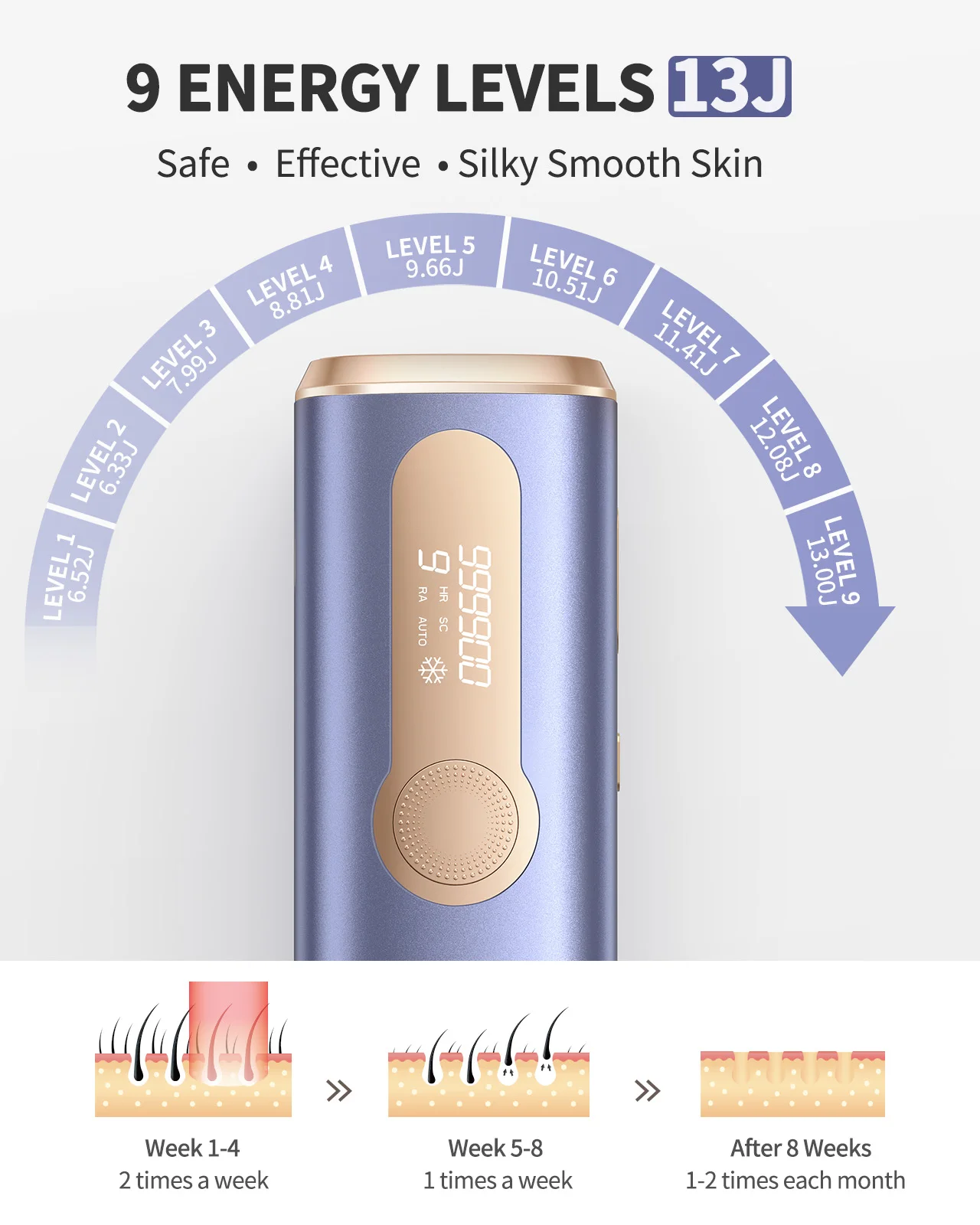 999900 Flashes IPL Depilação Dispositivo de resfriamento de gelo 9 níveis 2 modelos Depilador a laser permanente para corpo inteiro para mulheres e homens para uso doméstico - TopDealBox