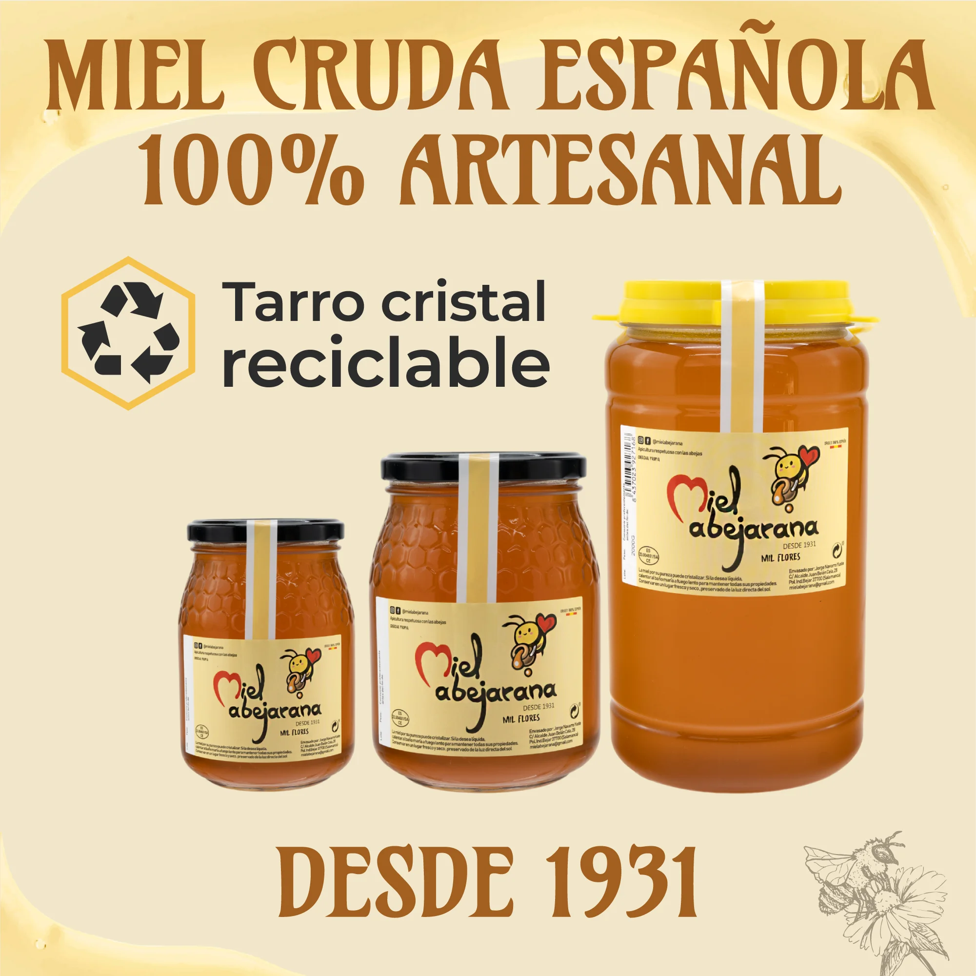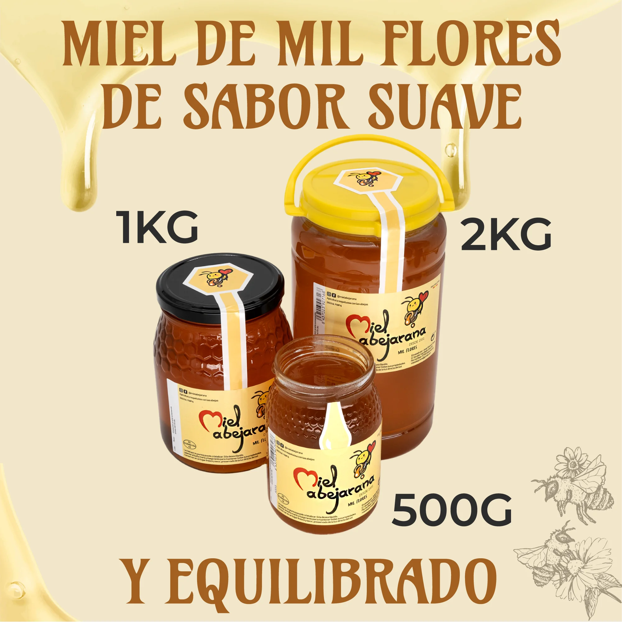 Abejarana Mel - Mel de Mil Flores 2kg - Formato Grande para Famílias Numerosas, Restaurantes e Hotéis - TopDealBox