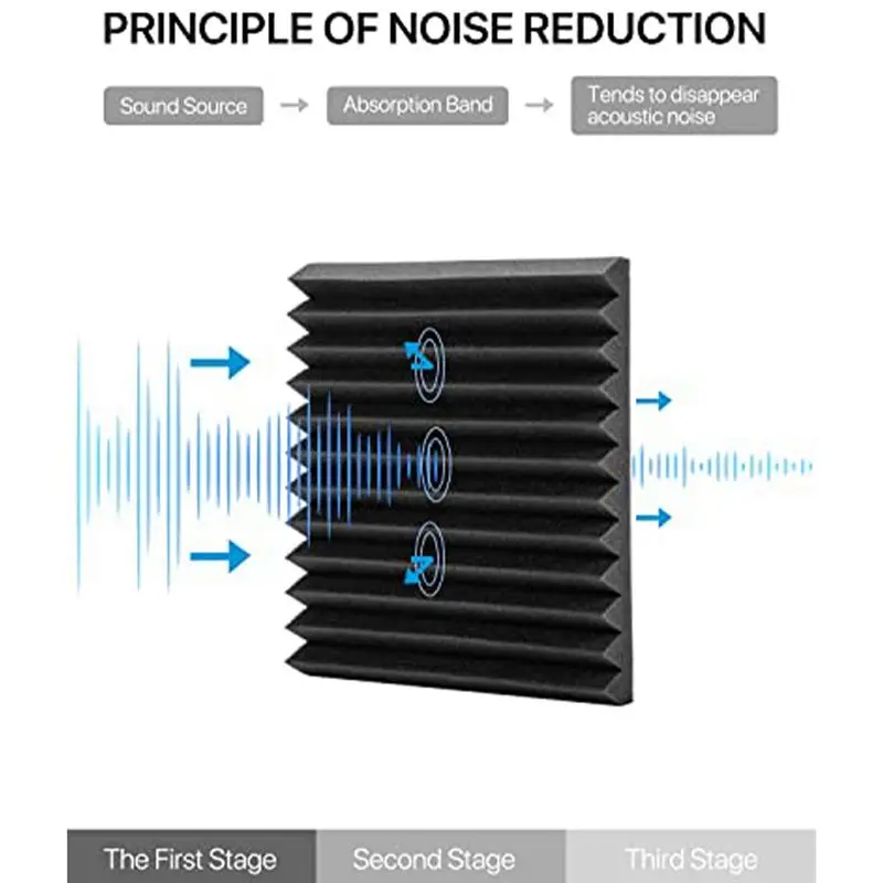 ABJN-24PCS Absorvedor de Som em Espuma Acústica para Isolamento Sonoro de Paredes, Redução de Ruído para Podcasts (30 X 30 X 2.5 Cm) - TopDealBox