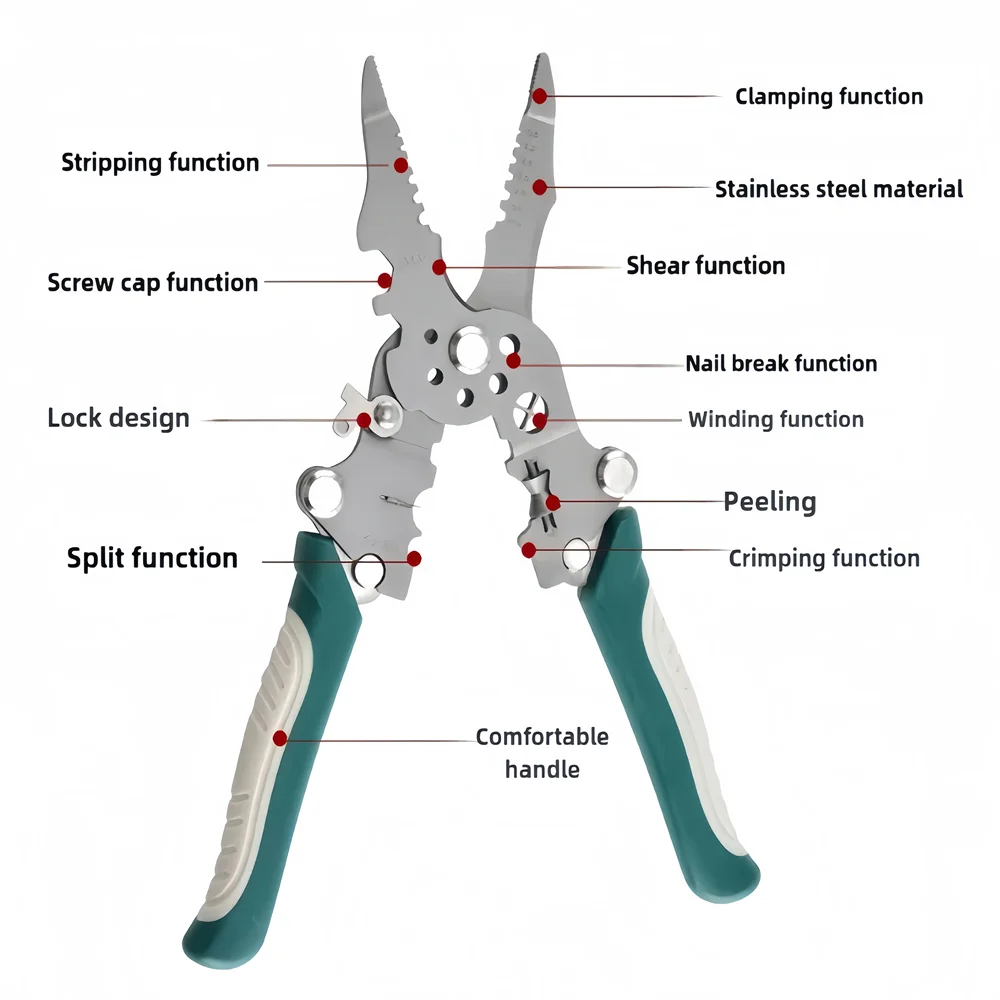 Alicate Multifuncional 18 em 1 Dobrável com Cortador, Crimpador e Ferramenta de Aperto para Cabos Elétricos - TopDealBox