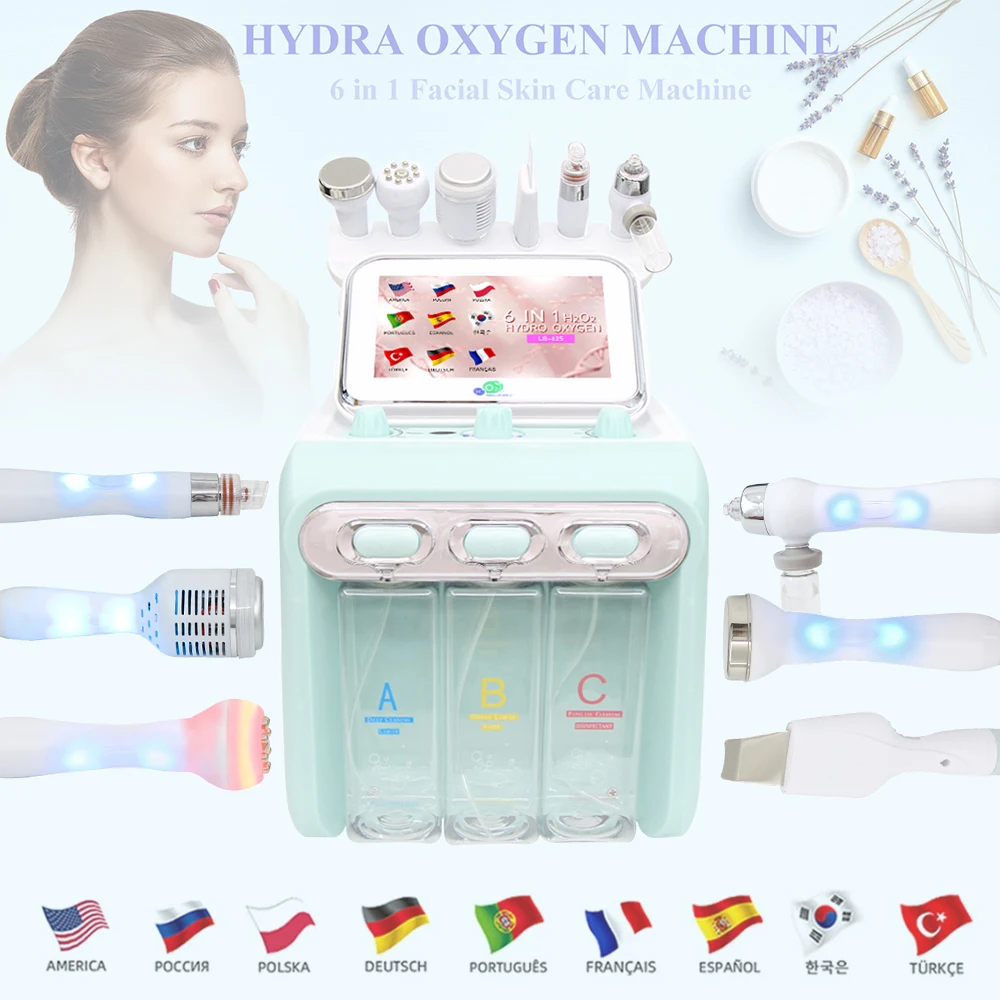 AOKO 6 em 1 Máquina Facial de Beleza Profissional Hydra Aqua Dispositivo de Limpeza Profunda de Cuidados com a Pele H2-O2 Hidro Dermoabrasão RF Bio-lifting - TopDealBox