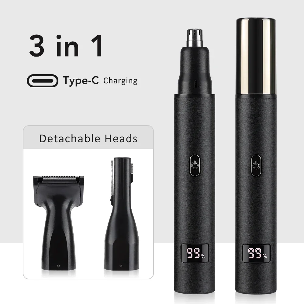 Aparador elétrico de pelos de nariz 3 em 1 para homens, portátil, display digital, nariz, orelhas, sobrancelhas, 360 ° Roating Indolor Seguro - TopDealBox