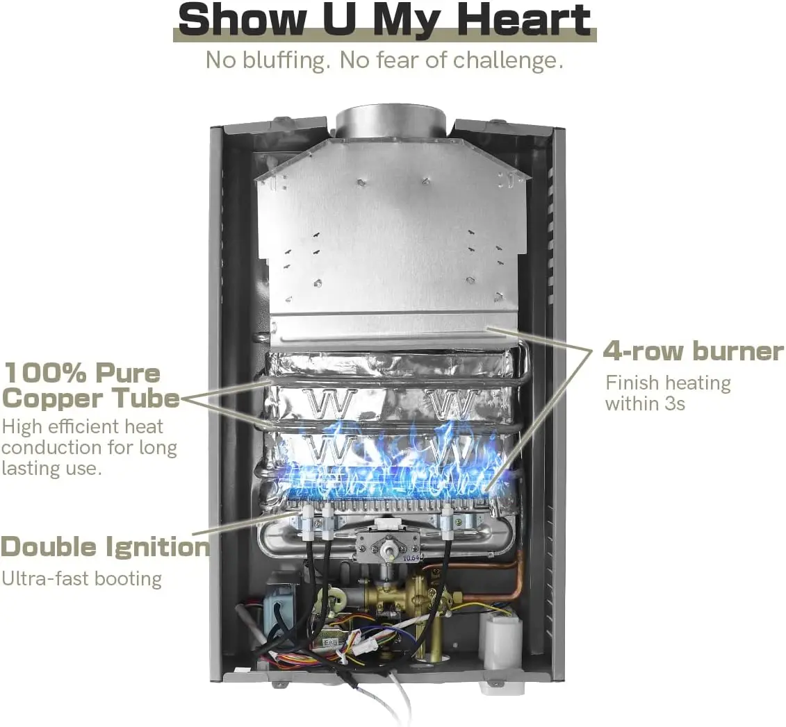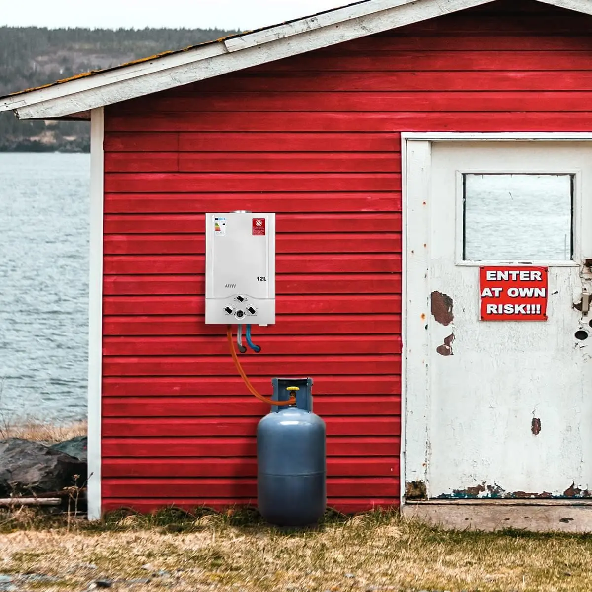 Aquecedor de água GLP 6L-18L, sistema de água quente a gás instantâneo com kit de chuveiro, aço inoxidável para uso doméstico e camping - TopDealBox