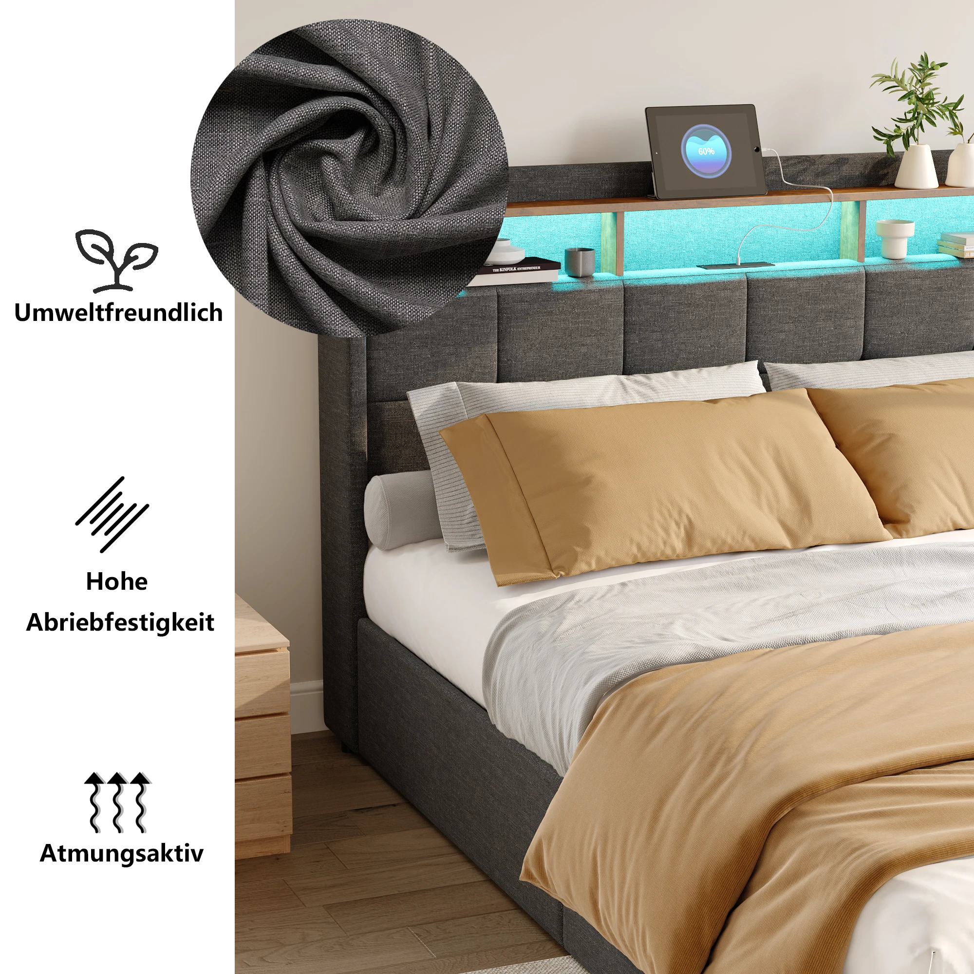 ♡Visualização rápidaArmação de cama estofada com cabeceira de carregamento USB, iluminação LED, 4 gavetas, armazenamento duplo, 140x200 cm238.13 EUREUR 425.24Quente★★★★★4.0