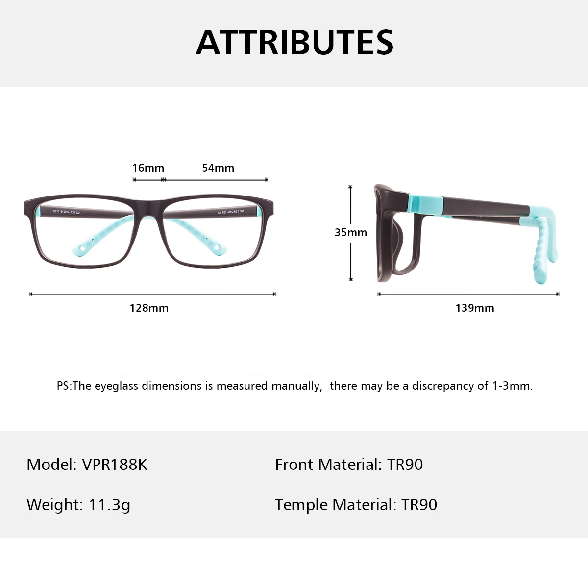 Início > Acessórios de vestuário > Colarinhos Armação de óculos retangular colorida tr90, aro completo, flexível, para meninos e meninas, confortável e durável, para lentes de prescrição óptica Informações de envio