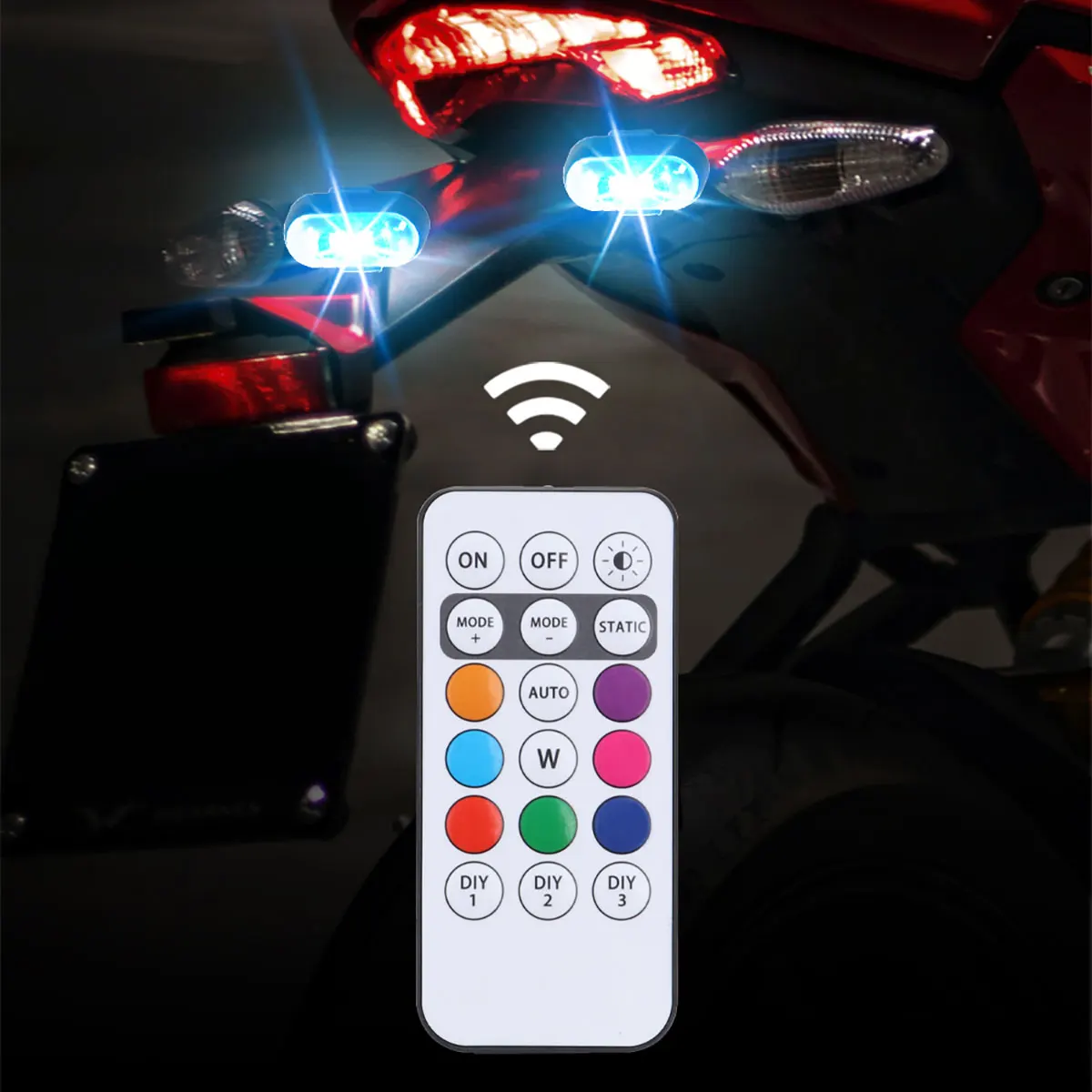Lâmpada de aviso anti-colisão LED para carro e motocicleta, luz estroboscópica impermeável, controle remoto sem fio, 8 cores, flash - TopDealBox