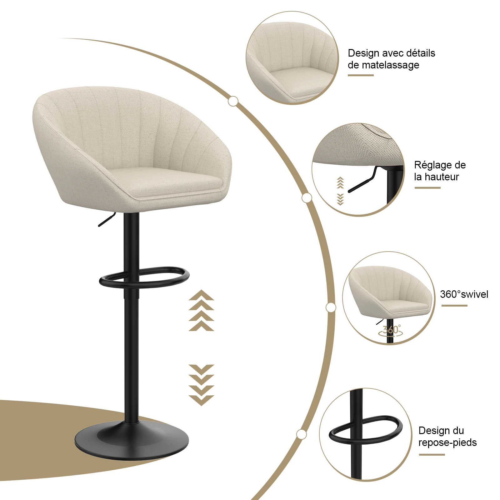 ♡Visualização rápidaConjunto de 4 bancos de bar - cadeiras de bar com altura ajustável - 360 ° cadeiras giratórias com encosto para cozinha e bistrô138.02 EUREUR 1984.38Quente