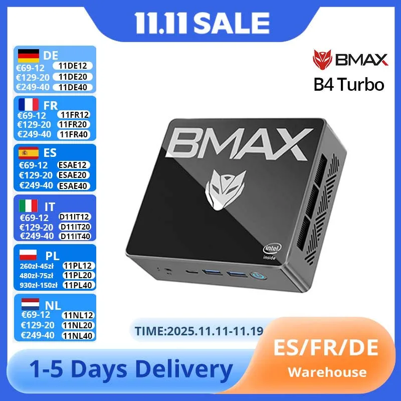 ♡Visualização rápidaBMAX B4 Turbo Mini PC Windows 11 PC Intel N150 16GB 512GB SSD 2 * HDMI 1 * Tipo-C Suporta 4K @ 60Hz 1000MHz Gráficos Intel USB144.43 EUREUR 433.71Quente★★★★★5.0
