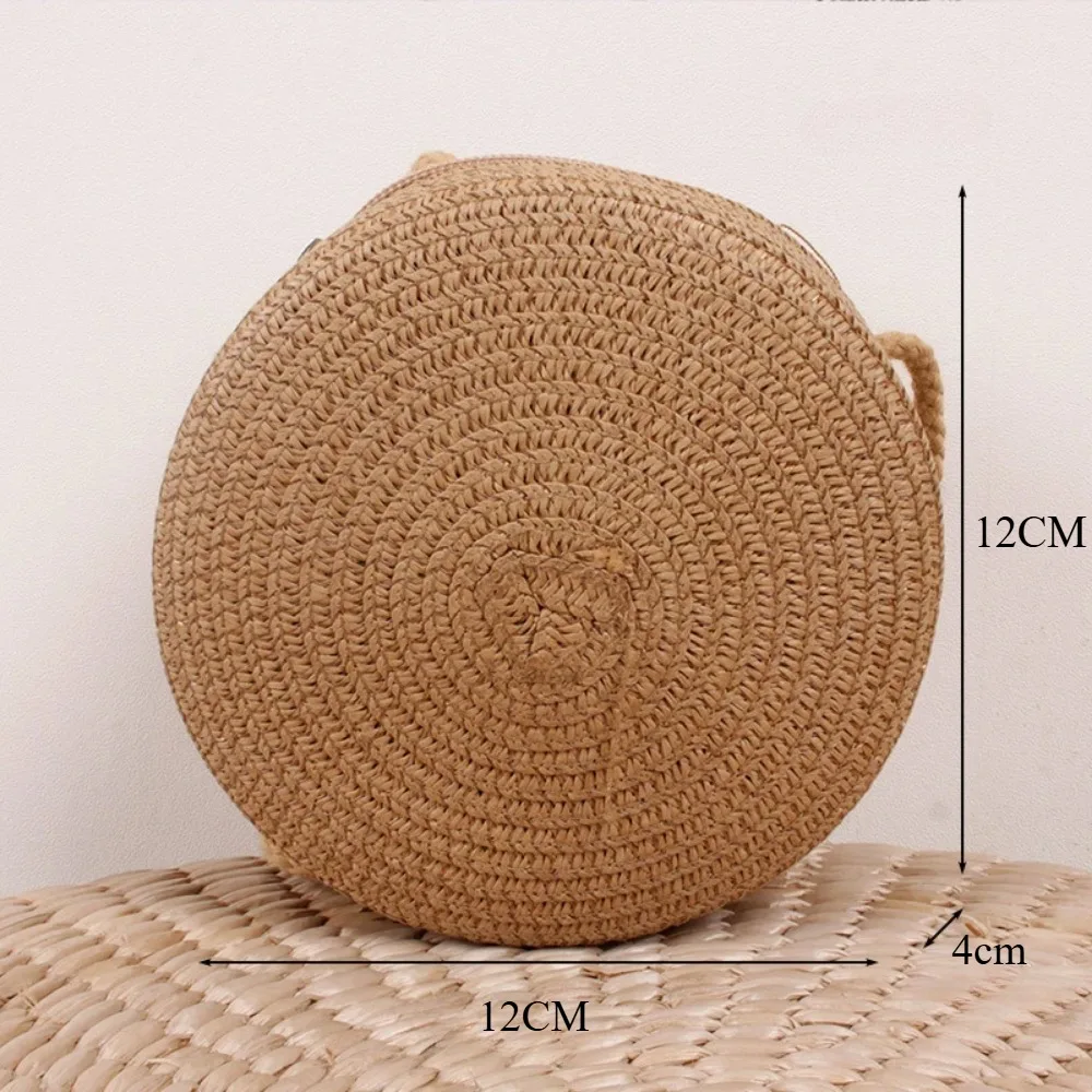 Bolsa de palha minimalista estilo férias – bolsa de ombro crossbody redonda feminina