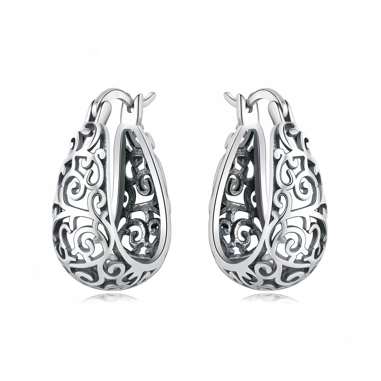 Brincos de Prata Esterlina 925 Série Vintage Vine, Brincos de Argola Versáteis para Mulheres, Joias Finas, Presentes para Aniversário e Festas - TopDealBox