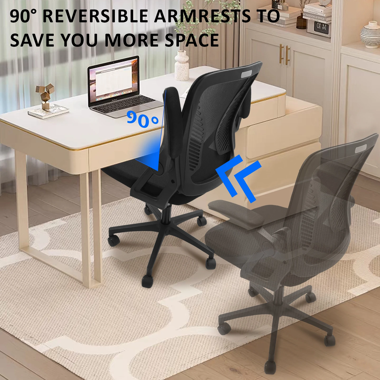 ♡Visualização rápidaCadeira de escritório ergonômica Naspaluro, cadeira de mesa com braços dobráveis, encosto ajustável em altura e respirável, cadeira giratória 360 °62.15 EUREUR 151.78Quente★★★★★★4.9