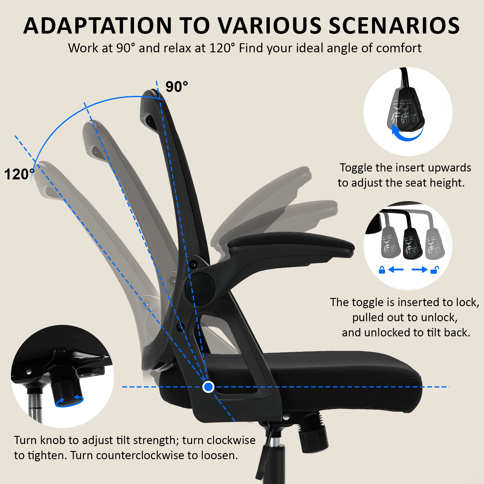 ♡Visualização rápidaCadeira de escritório ergonômica Naspaluro, cadeira de mesa com braços dobráveis, encosto ajustável em altura e respirável, cadeira giratória 360 °71.86 EUREUR 152.64Quente★★★★★★4.9