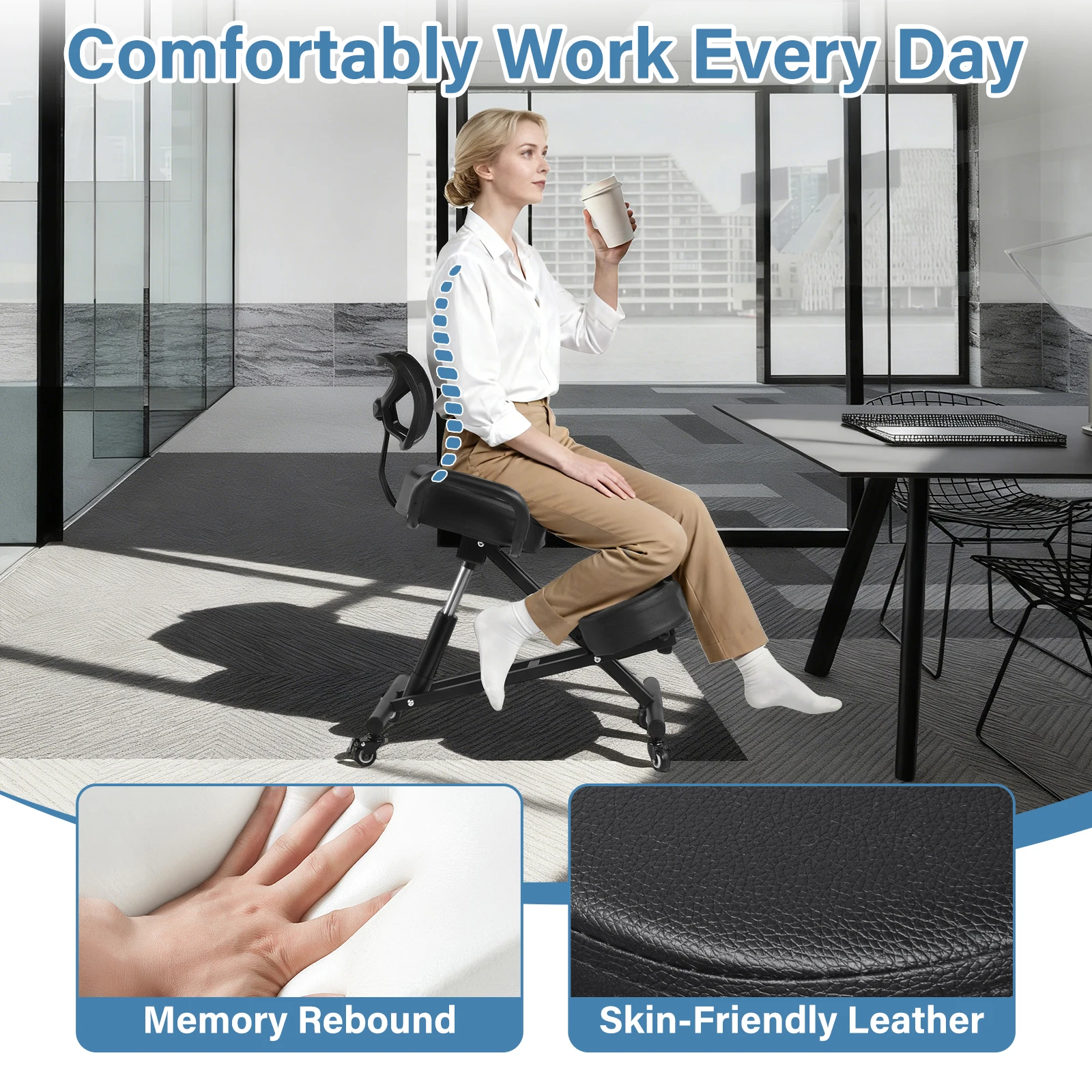 Cadeira ergonômica ajoelhada com encosto, altura ajustável, melhora a postura, almofadas grossas, rodas de travamento para casa e escritório - TopDealBox