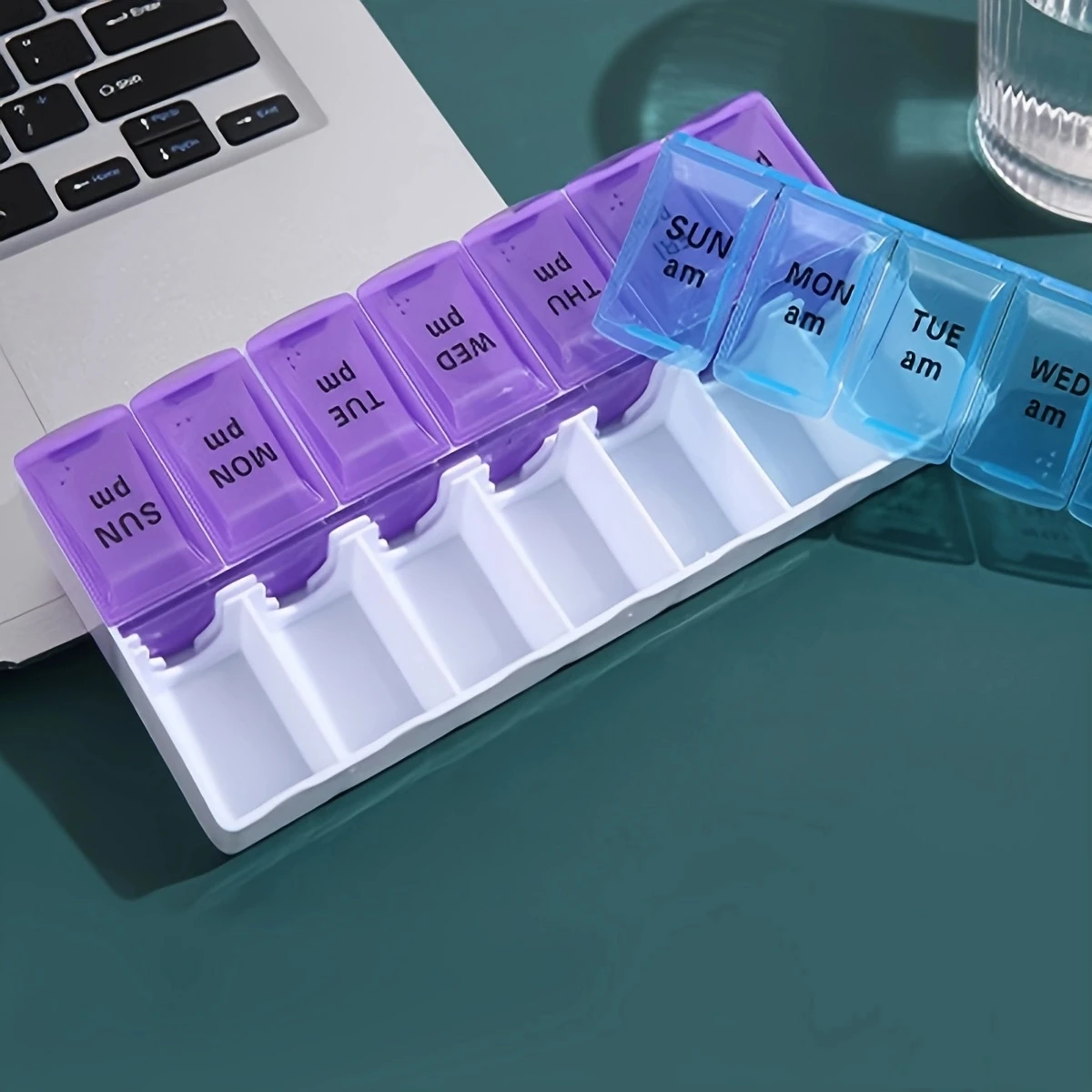 Caixa de comprimidos de 14 compartimentos de fileira dupla com Braille. É uma pequena caixa de comprimidos para classificar e armazenar manhã - TopDealBox