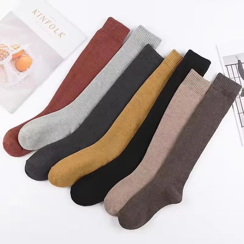 Meias Femininas de Inverno Quentes, Longas, Grossas, Térmicas, de Algodão, Estilo Harajuku, Respiráveis, Grossas, Casuais, até o Joelho - TopDealBox
