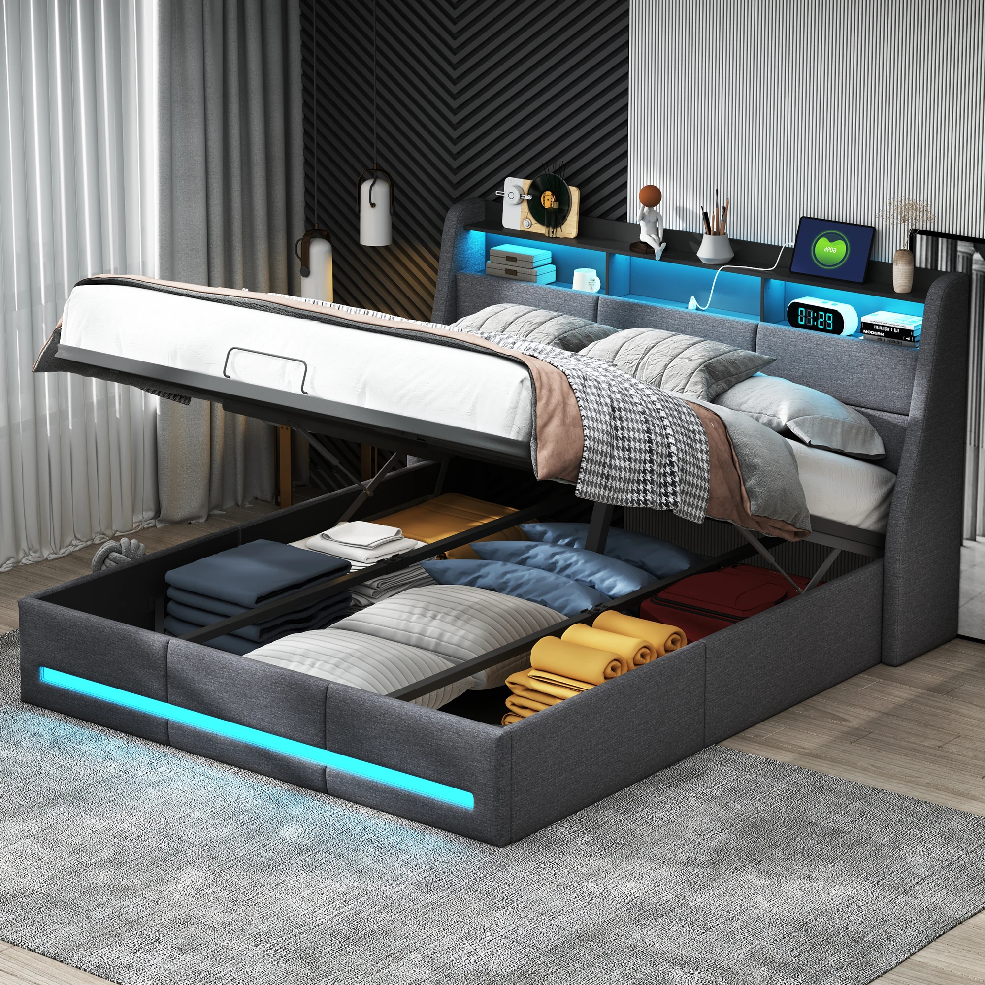 ♡Visualização rápidaRosahqnda cama de casal com iluminação LED cabeceira conectores USB compartimento de armazenamento cama de armazenamento cama de hóspedes cama de juventude tecido de veludo239.13 EUREUR 484.12Quente★★★★★★4.7