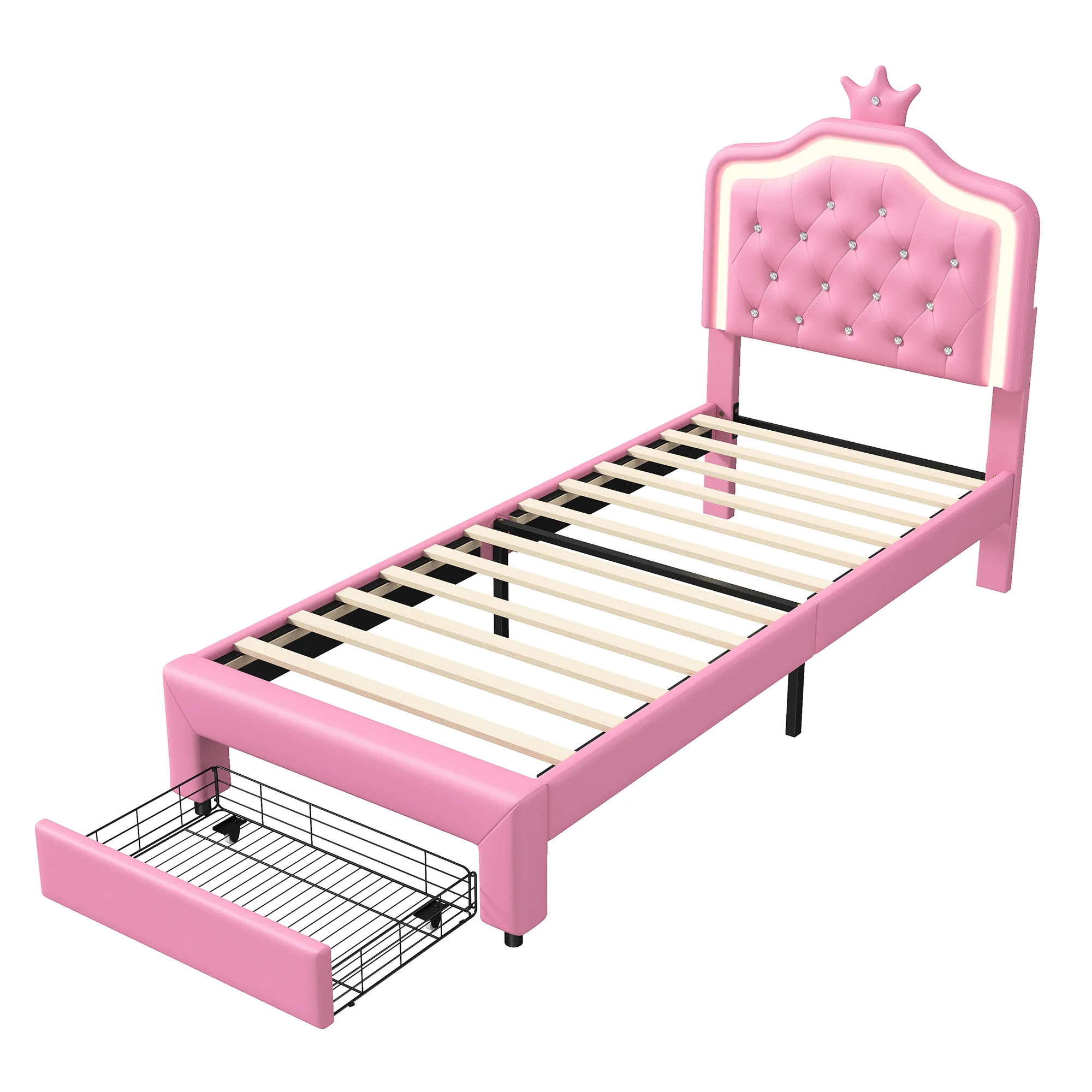 ♡Visualização rápidaComanlai-Cama infantil com luz LED, cabeceira em forma de coroa, cama estofada em couro PU, branco, 90x200cm157.37 EUREUR 276.36Quente