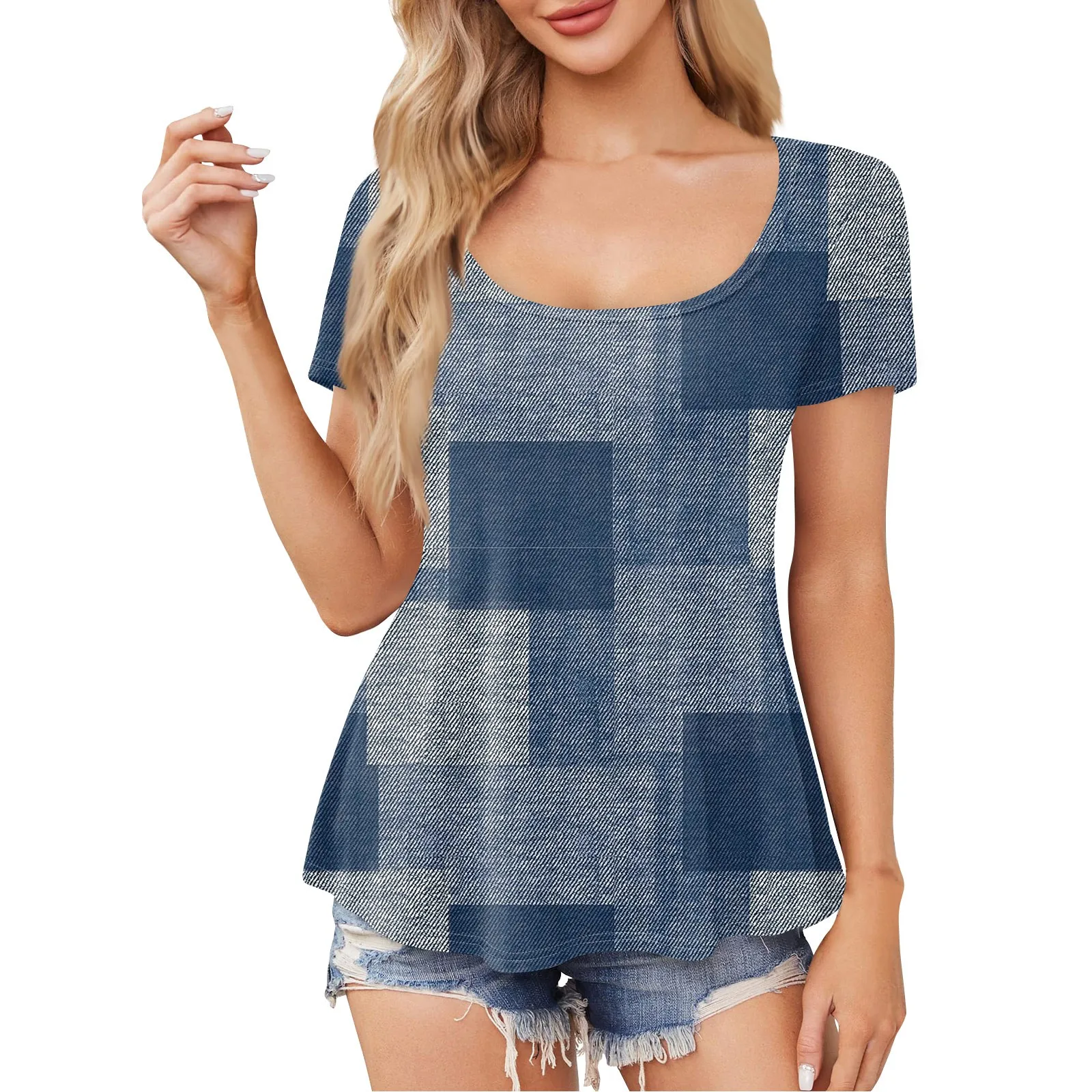 Camiseta retrô flor feminina com gola redonda baixa, camisa de manga curta, blusa fofa feminina, moda lazer verão, moda - TopDealBox
