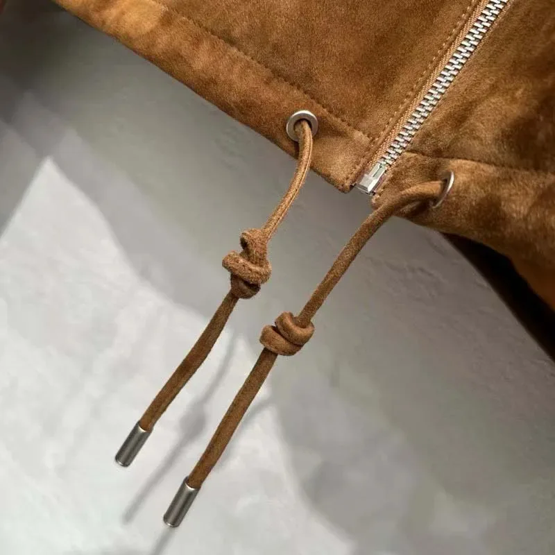 ↑Casaco feminino outono 2025 nova moda comprimento curto camurça jaqueta de couro gola alta roupas alta qualidade manga longa - TopDealBoxJaqueta de couro real feminina, casaco de pele de carneiro, corta-vento, clássico, clarete, lapela grande, ombro largo, ultracurto, luxo, designer, outono