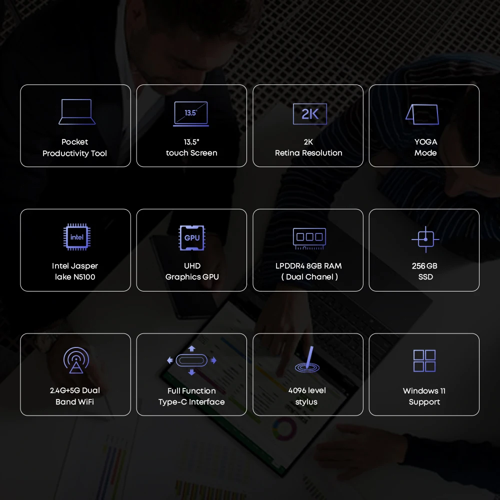 ↑CHUWI-FreeBook 360 ° Laptop Tablet, FHD Touch Screen, janelas 11, Intel Celeron N5100 Quad Core, 8GB, 256GB, 13.5 ", Suporte Stylus - TopDealBoxCHUWI-Tablet Windows 11, Hi10 Max, 2 em 1, 12.96 ", Tela 2880x1920, Intel N100, 12GB, DDR5, SSD de 512GB, WiFi 6, BT5.2, 3G, 4G CHUWI-CoreBook X Gaming Laptop, 14 ", FHD, tela IPS, Intel i3-1215U, 6 Core, Windows 11, 8GB, 16GB, DDR4, 512GB, SSD, computador portátil WuKong CHUWI-FreeBook 360 ° Laptop Tablet com tela sensível ao toque, janelas 11, Intel N100, Quad Core, 12GB, LPDDR5, 512G, SSD, WiFi 6, 13.5 ", FHD