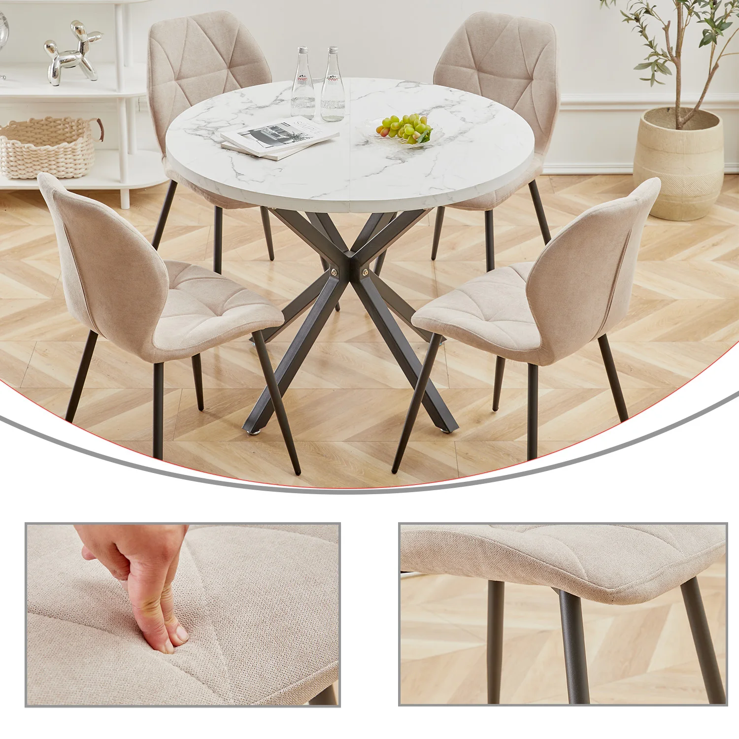 Conjunto de 2/4/6 cadeiras de jantar modernas GrandCA HOME, estofadas, com tecido de linho acolchoado, cadeiras minimalistas para escritório, cozinha e sala de jantar - TopDealBox