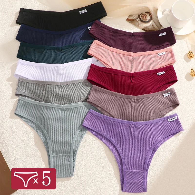 Conjunto de 5 Peças de Calcinhas de Algodão Femininas, Estilo V, Roupa Íntima Confortável, Biquíni T-Back de Baixa Cintura, Lingerie para Meninas Nova - TopDealBox