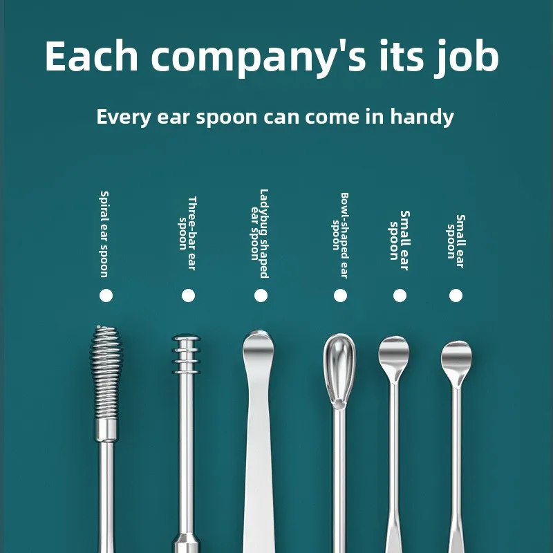 Ferramenta de remoção de cera de ouvido em aço inoxidável, conjunto de 6 peças, colher de ouvido rotativa em espiral, limpador de ouvido portátil para cuidados seguros com os ouvidos - TopDealBox