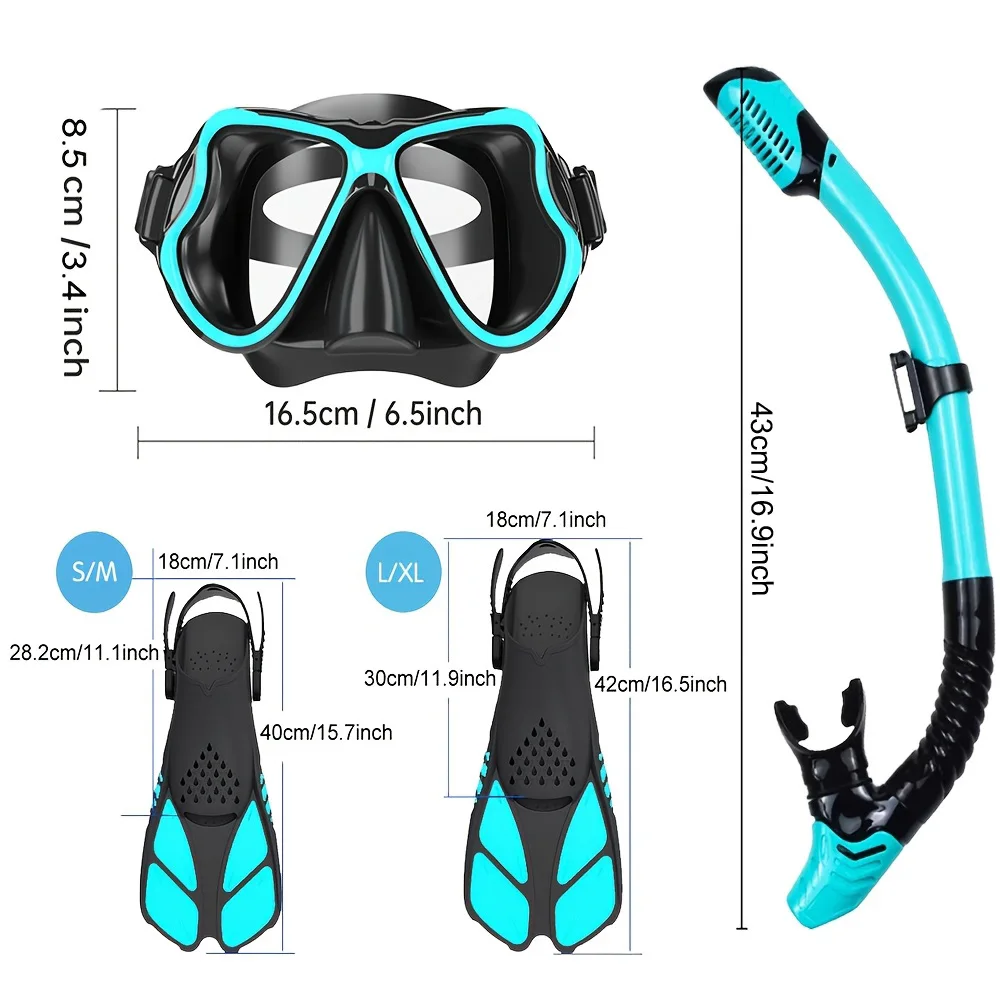 Conjunto de snorkel com aleta de máscara, equipamento de mergulho para adultos com visão panorâmica, máscara antiembaçante, barbatanas de trekking, snorkel superior seco e bolsa de equipamento - TopDealBox