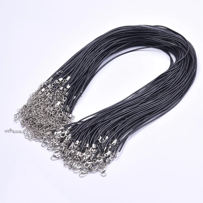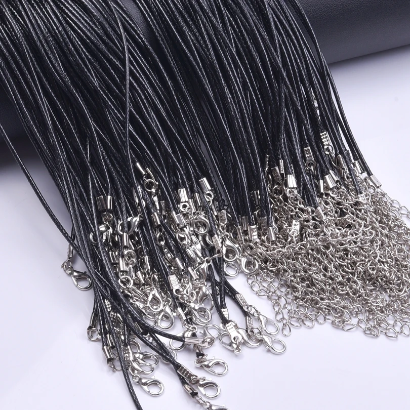 Corda de couro preta ajustável para DIY, cabo de cera, colar artesanal, jóias fazendo acessórios, lagosta fecho correntes, 10 pçs/lote, 20 pçs/lote, 30 pçs/lote - TopDealBox
