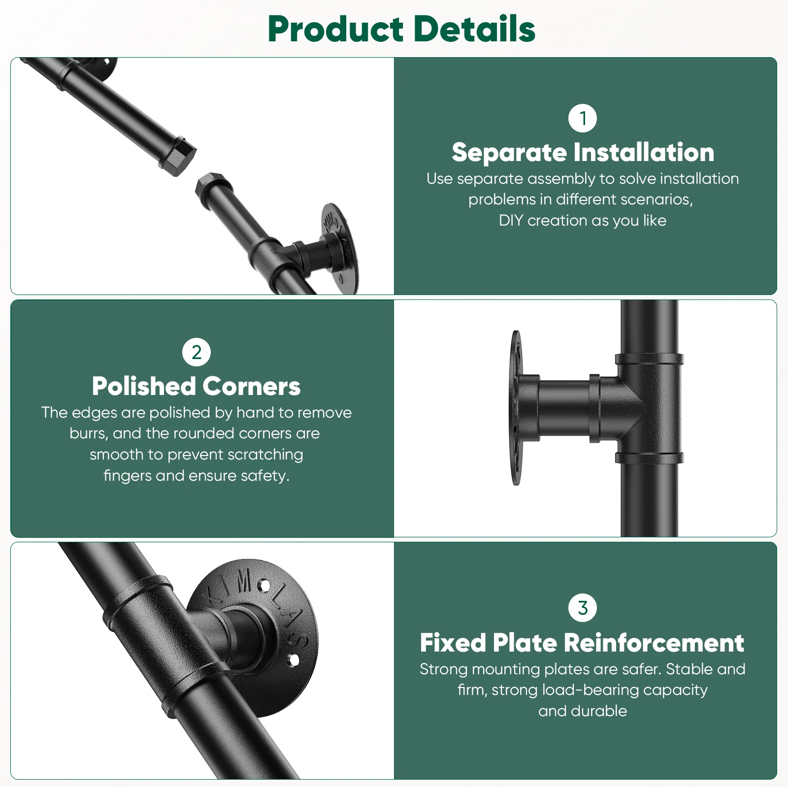 Início > Melhorias domésticas > Escadas e peças para escadas Corrimãos de escada de ferro de 1.2m para uso doméstico, corrimãos simples de tubulação de água para paredes internas, escaladores antiderrapantes para idosos Informações de envio